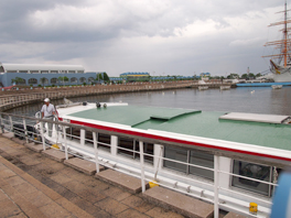 一番の目的は果たしましたがこれで帰路に着くのも何なので、お腹が空くまでどこか観光できないかと探したところ、遊覧船を発見しました。手前です。
