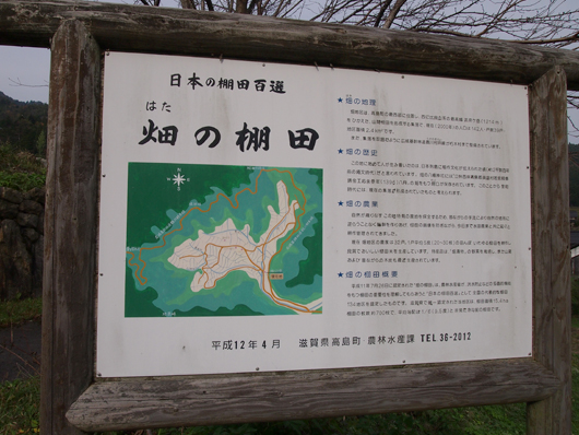 畑の棚田、なんとも直球で伝わりやすいネーミング。平成11年に日本の棚田百選に指定されました。日本の棚田百選とは農林水産省によって日本全国から選定され、滋賀県内で唯一、指定されたのがこちらの「畑の棚田」です。