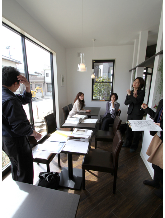 本日は内装の装飾、カーテンなどOPENに向けての最終打合せを迎えています。