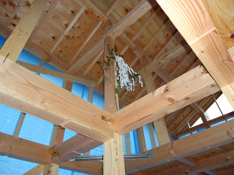 1日で家の骨組みが完成する日です。