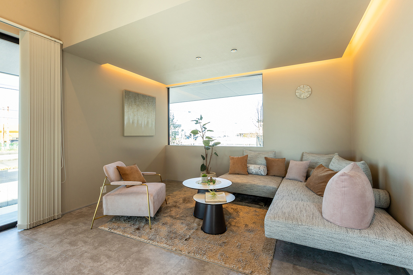 【LDK】25.1帖の広々としたリビング。 【ミセスルーム】キッチンの横にミセスルームを設けました。クリアの2枚引戸により空間を仕切ることができるので、キッチンと繋げてより広くスペースを活用することも可能です。