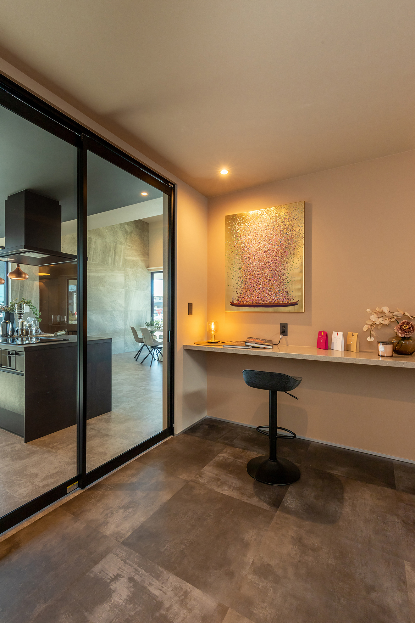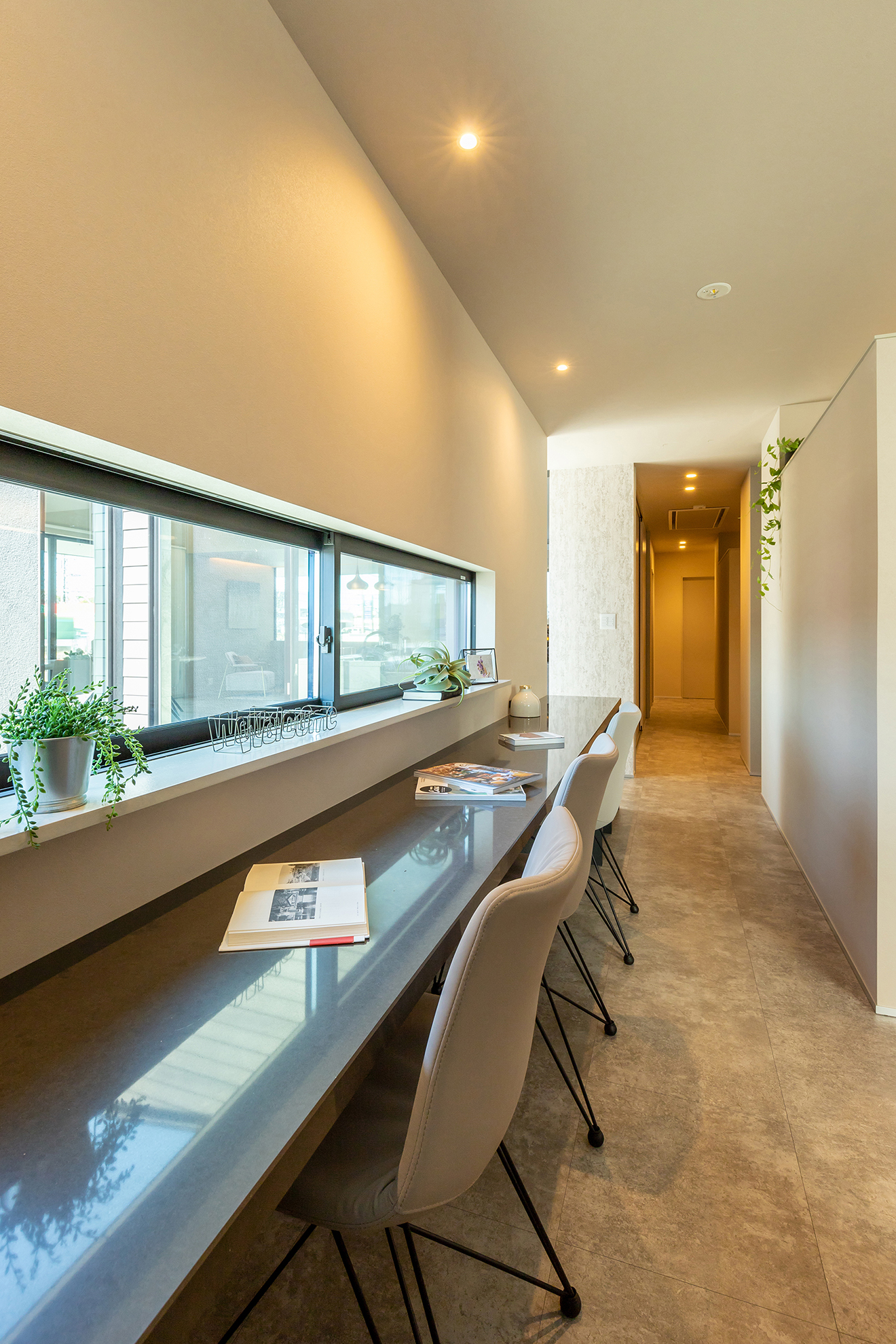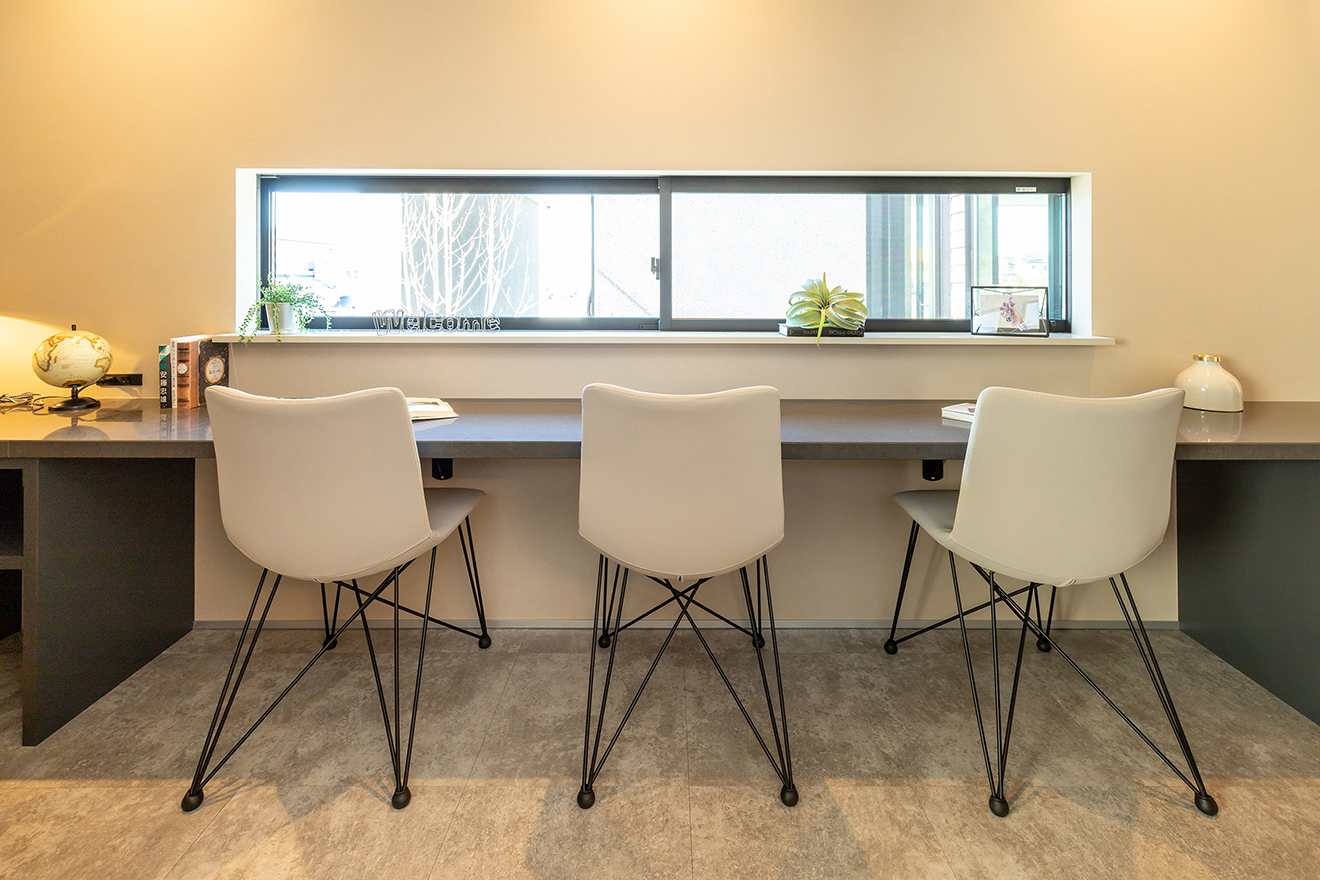 【カウンター】読書やパソコンなど、趣味やちょっとした作業ができるスペース。目前の窓には中庭の景色が広がります。