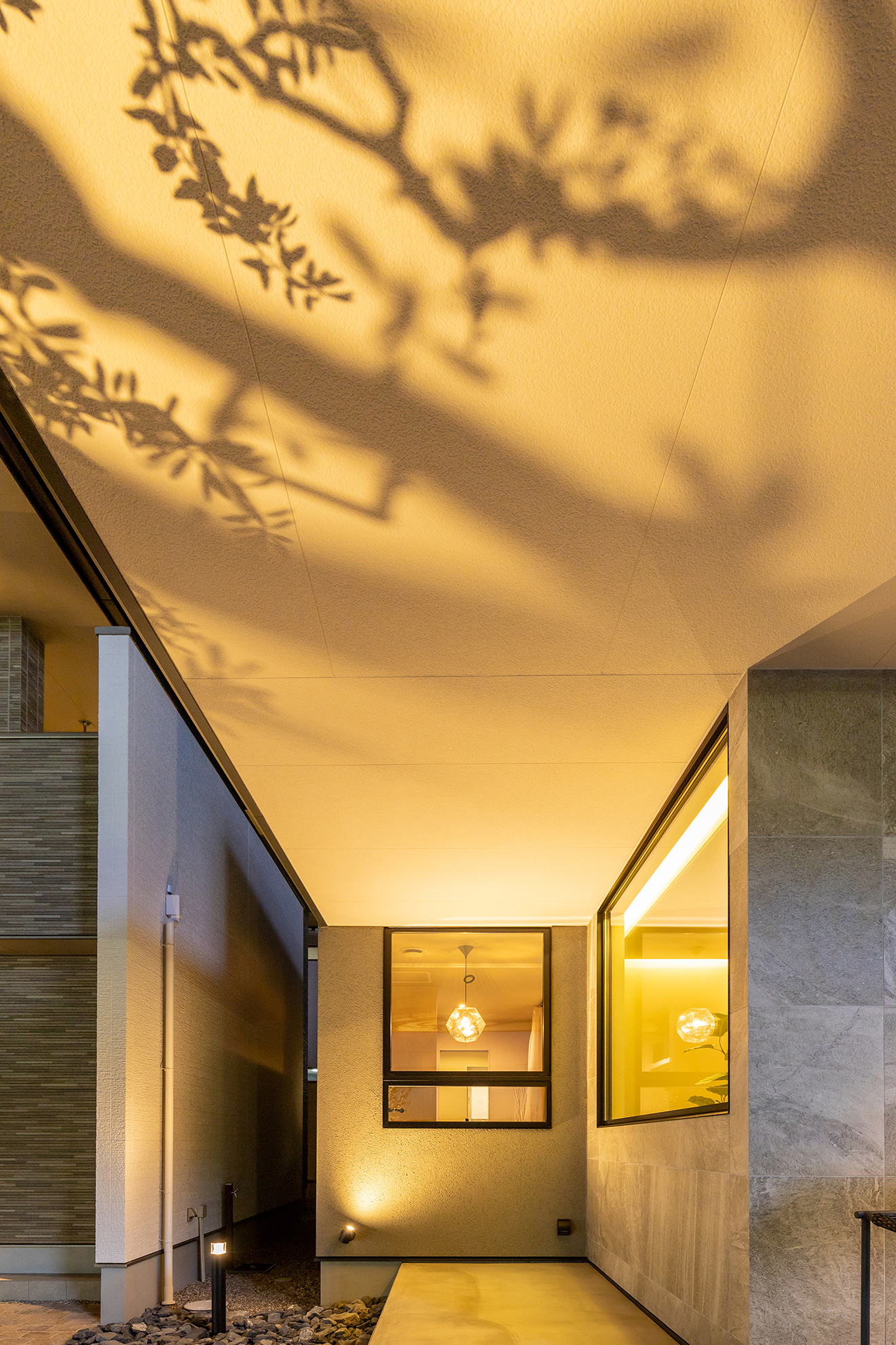 【夜景・外観】足元からのライトアップが幻想的な影模様を描きます。