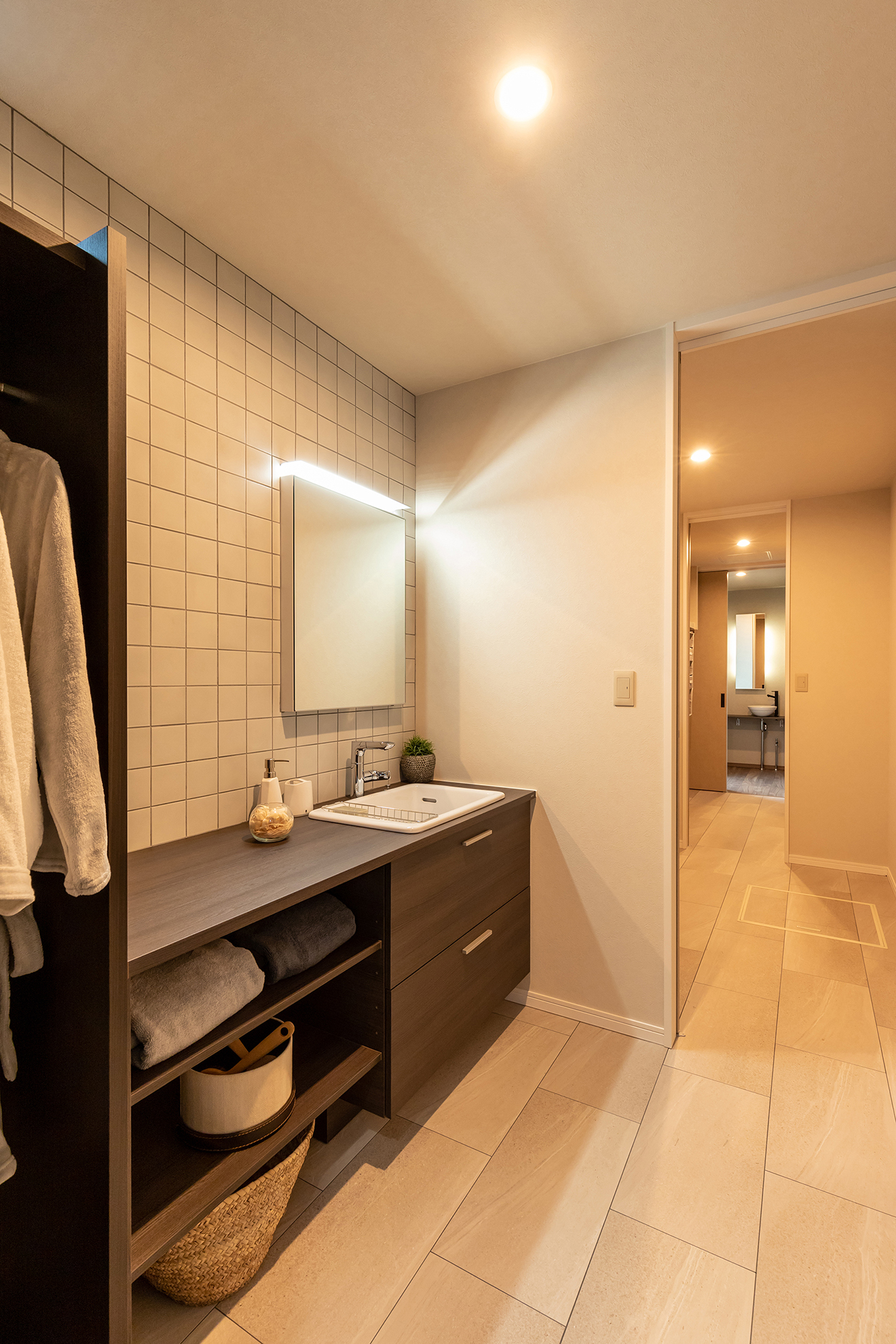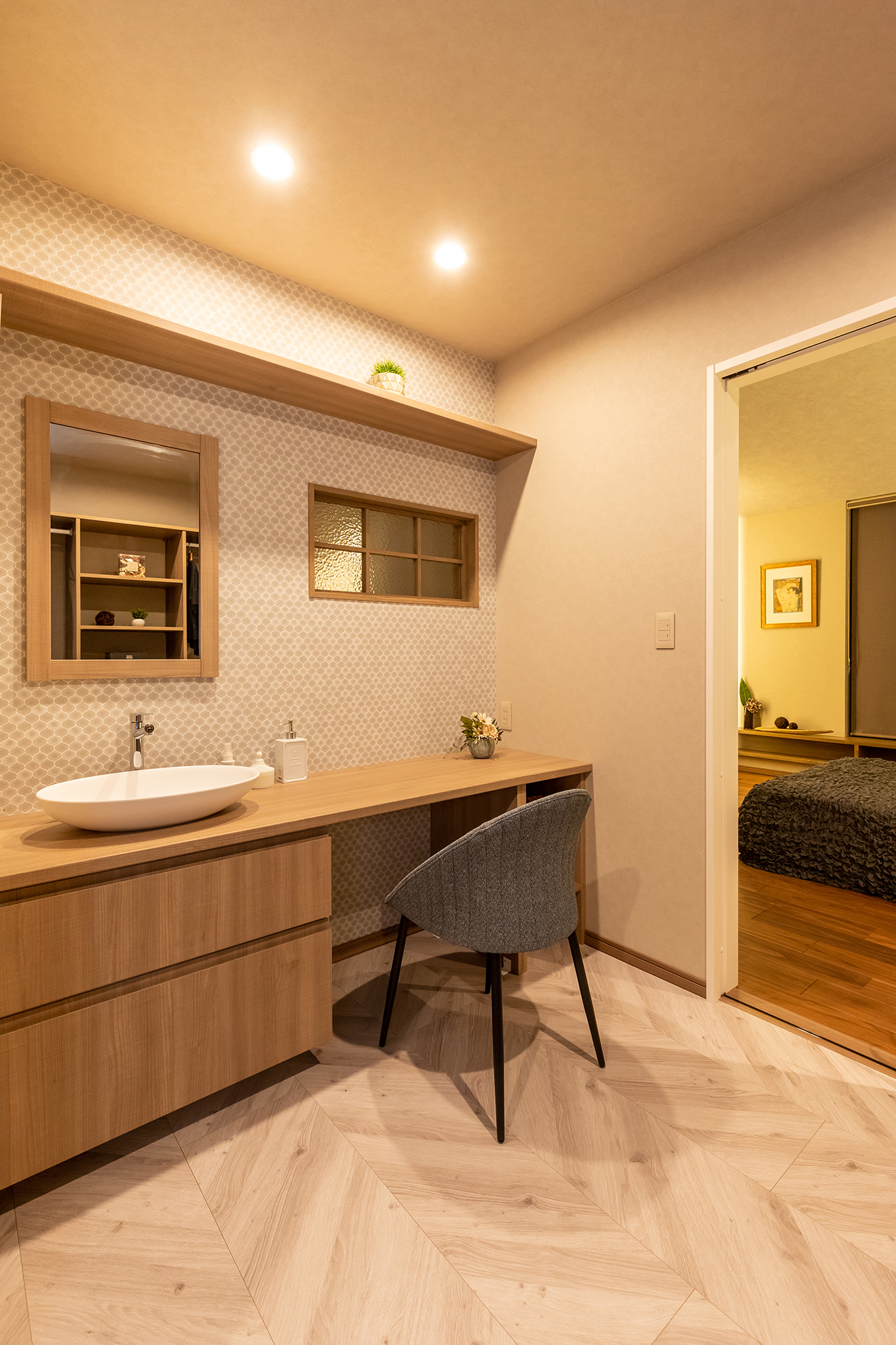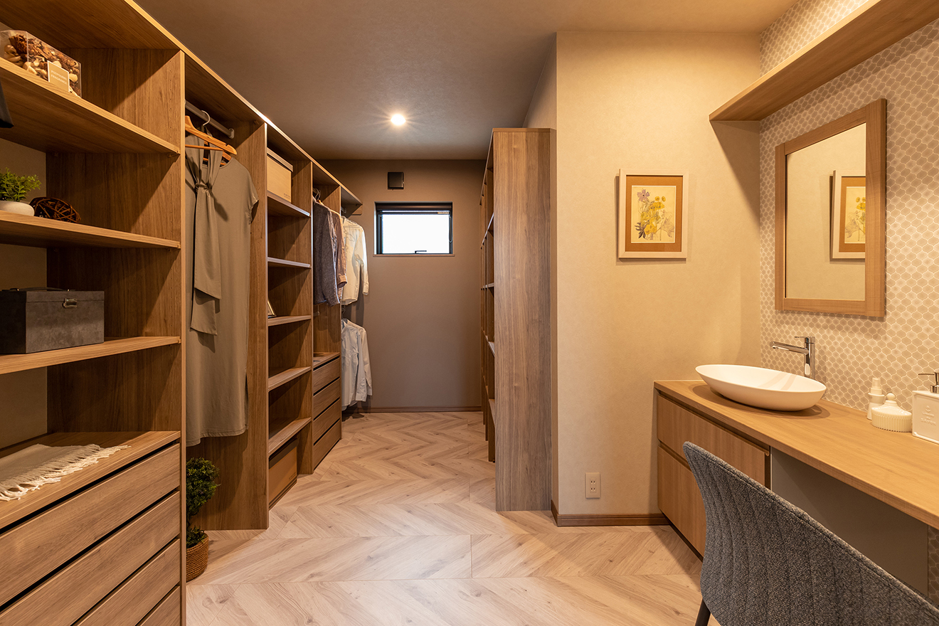 【夜景・WIC】ウォークイン・クローゼット内にパウダーコーナーを設けることで、毎日のメイクやコーディネートを効率的に行えます。