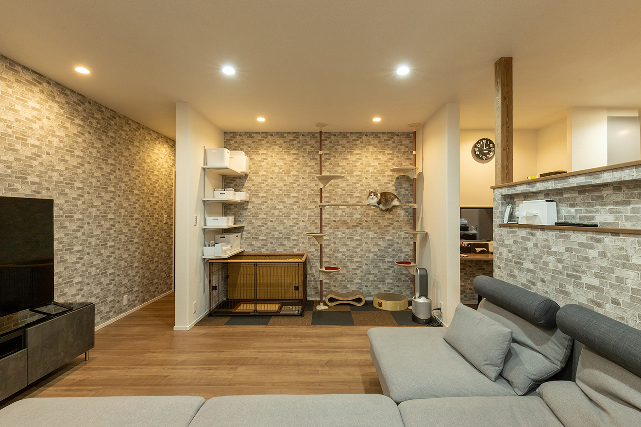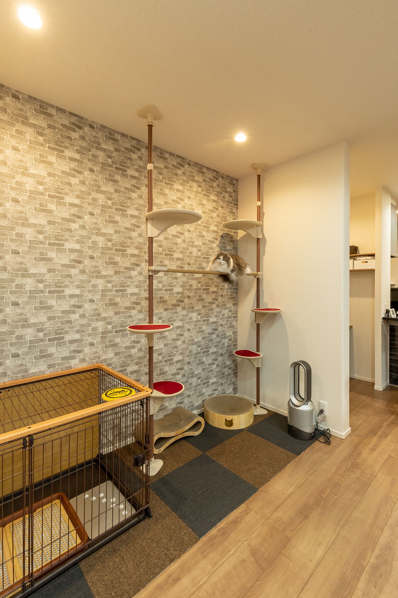 【愛猫】キャットタワースペースでポージングをしてくれるかわいい愛猫さん。【愛犬】愛犬が楽しく過ごせるようにドックランや室内を彩っています。