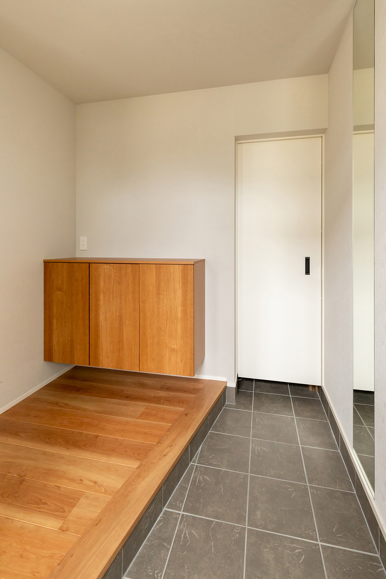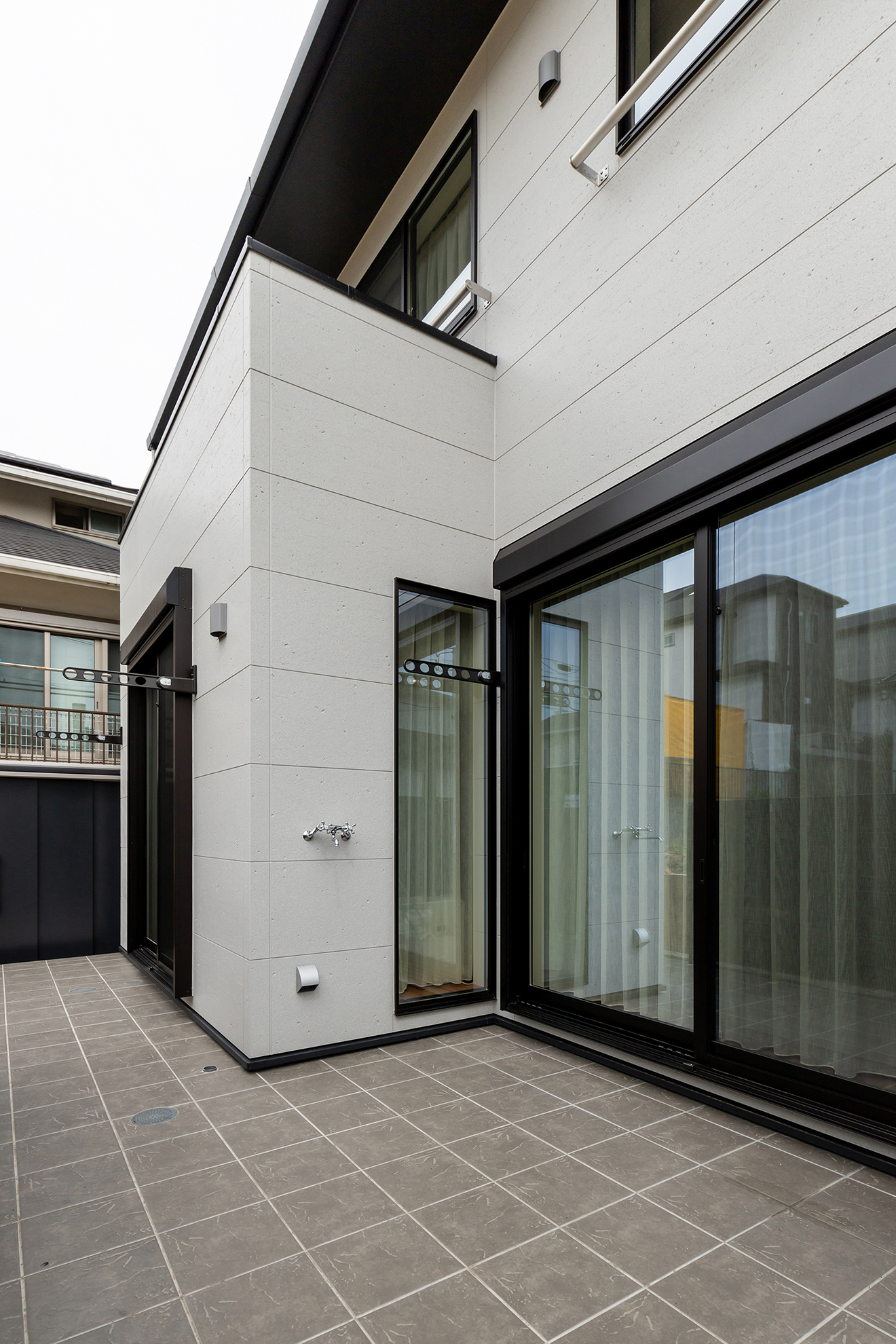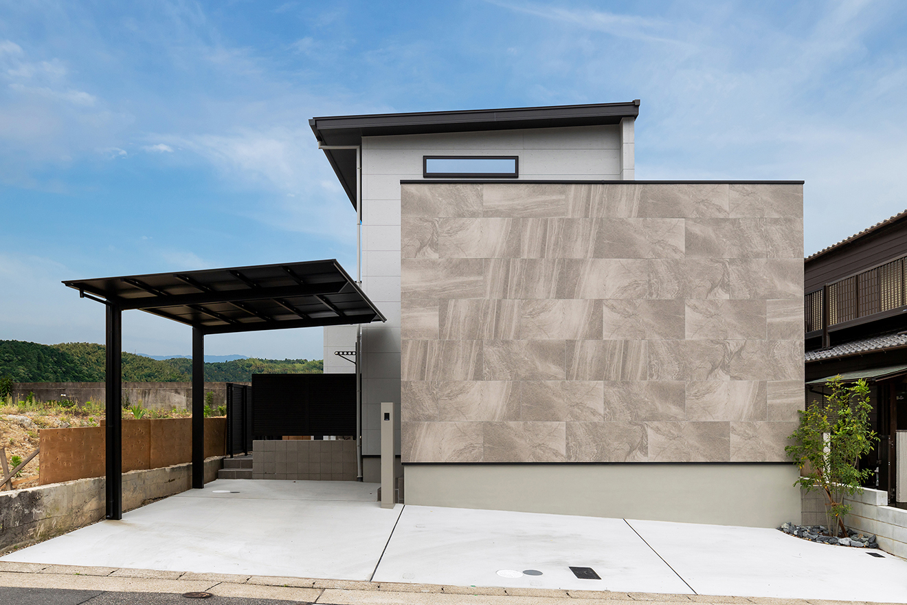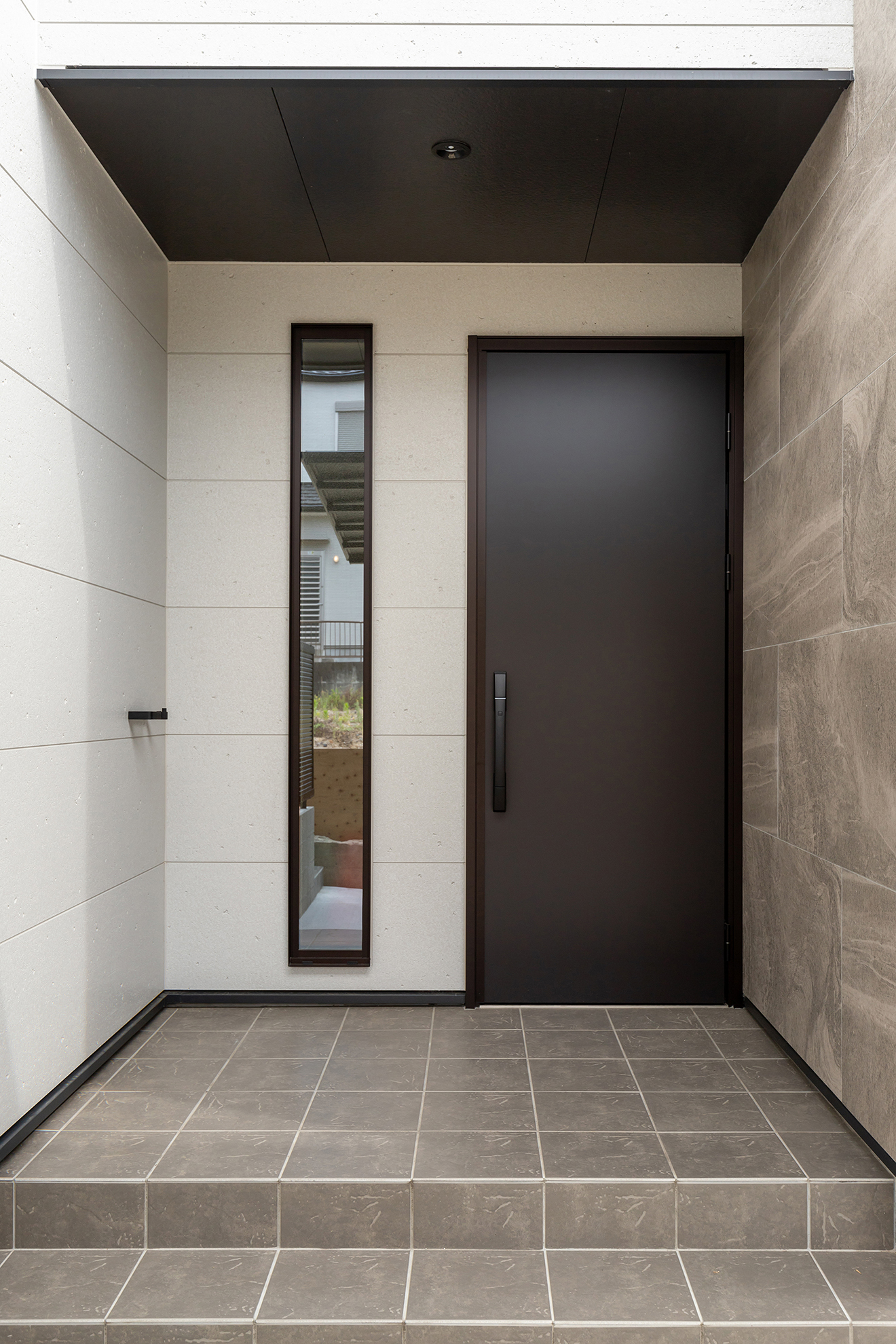 【タイルデッキ】家族の時間がもっと楽しくなる、心地よいアウトドア空間。 【玄関ポーチ】落ち着いた雰囲気で雨や視線をやさしく遮ります。