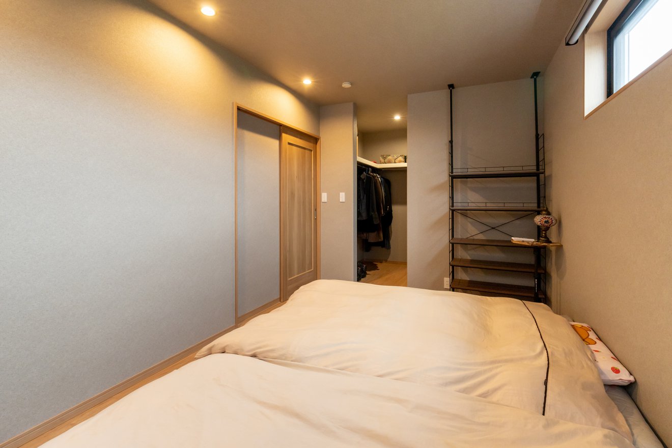 【スキップフロア】個別の時間を楽しみながら家族のつながりを感じられます。【主寝室】ダウンライトが壁面をやわらかく照らし、奥行きと陰影を演出。高窓から差し込む自然光が加わり、心地よい光の広がりを楽しめます。