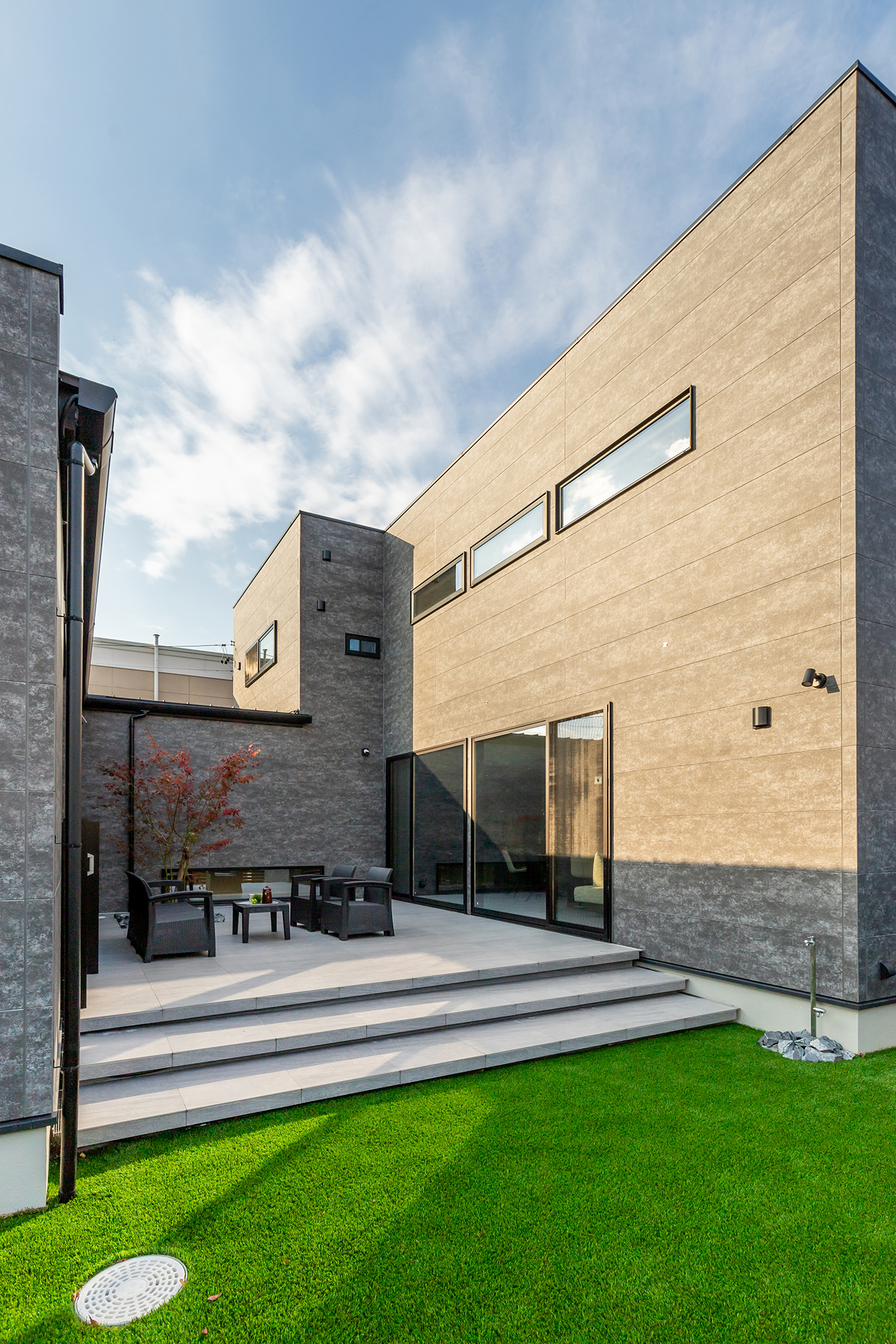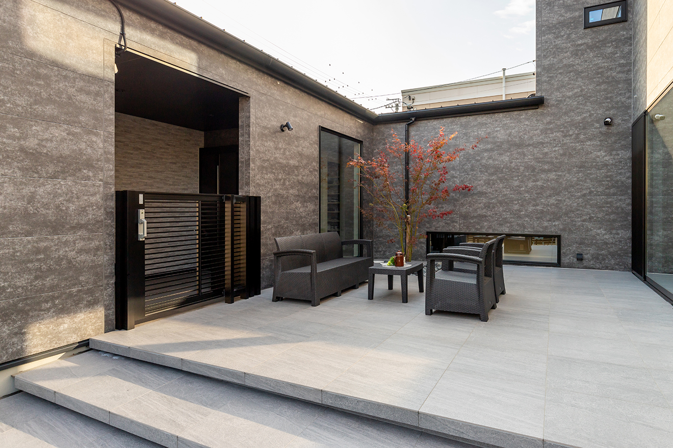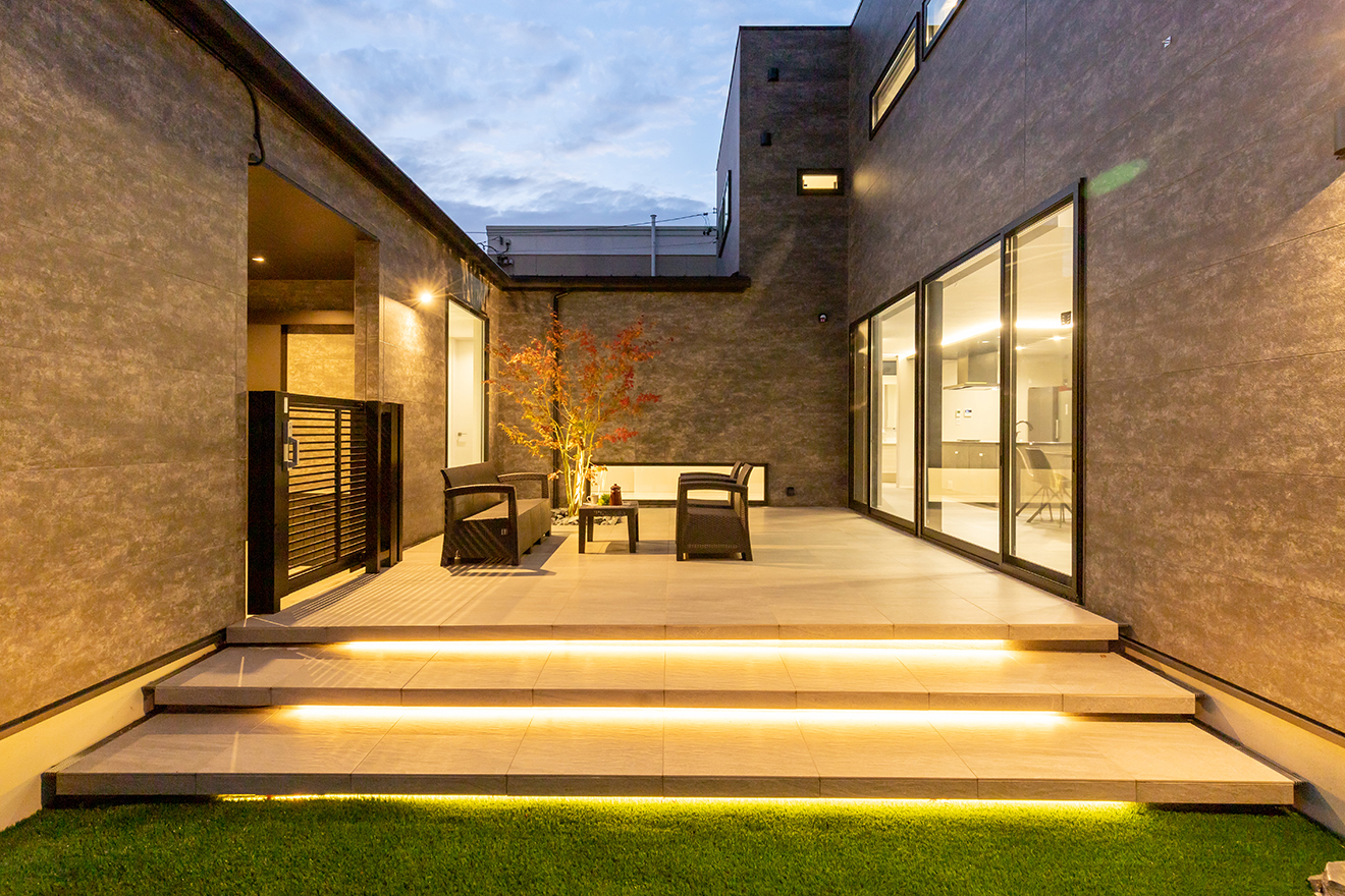 【中庭】建物で囲むことで外からの視線を気にせず過ごせます。一年中楽しめるアウトドアリビングとしても利用可能。