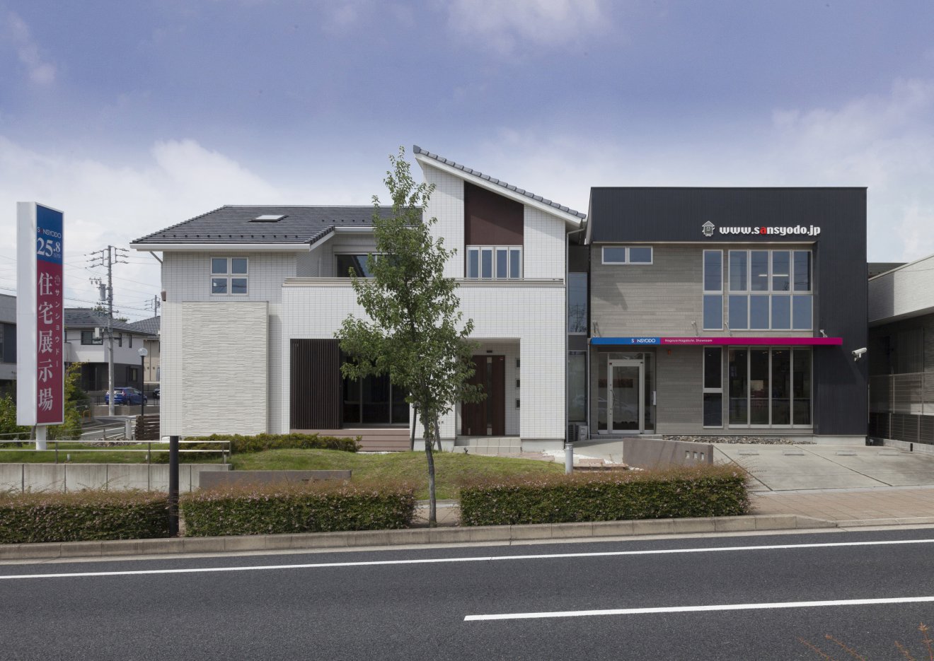 【外観】清潔感のある白タイルを用いた外観と、黒のガルバリウム鋼板で引き締めたシンプルな外観。