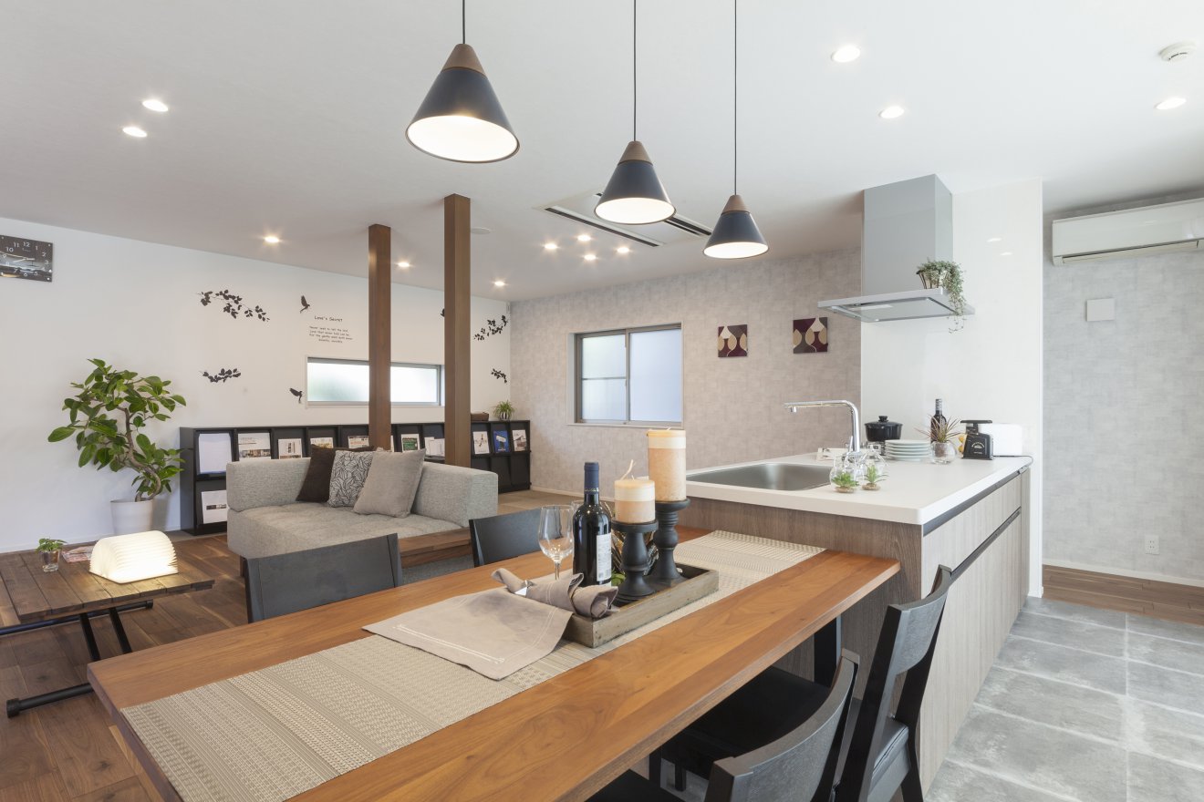 【LDK】ダイニングテーブルと横並びのオープンキッチン。片付けや配膳も楽々な人気のレイアウトです。
