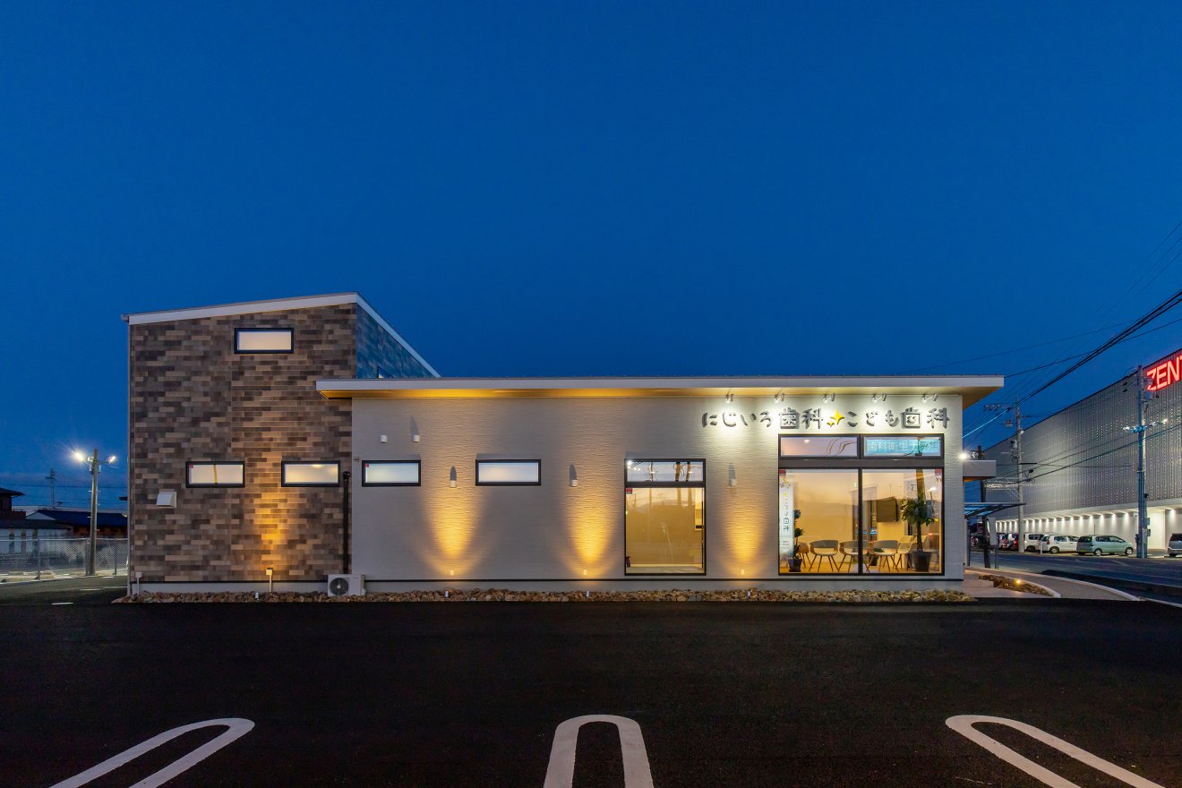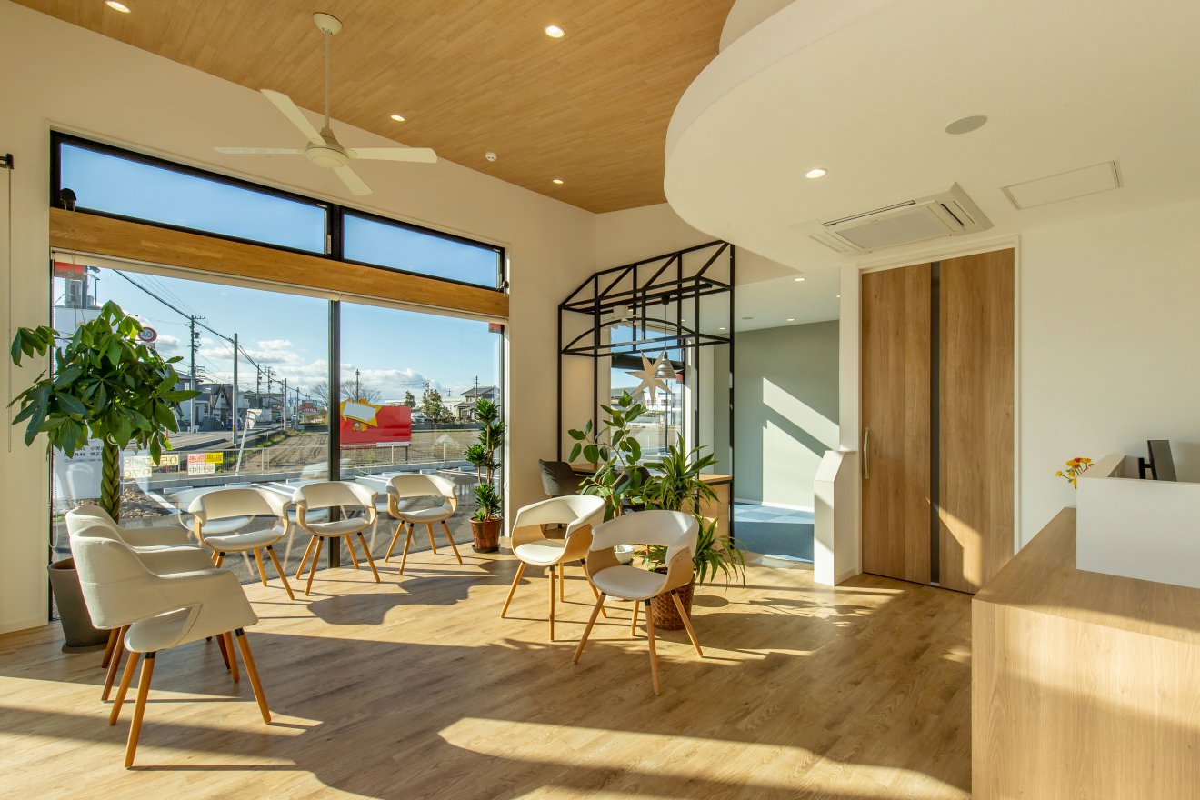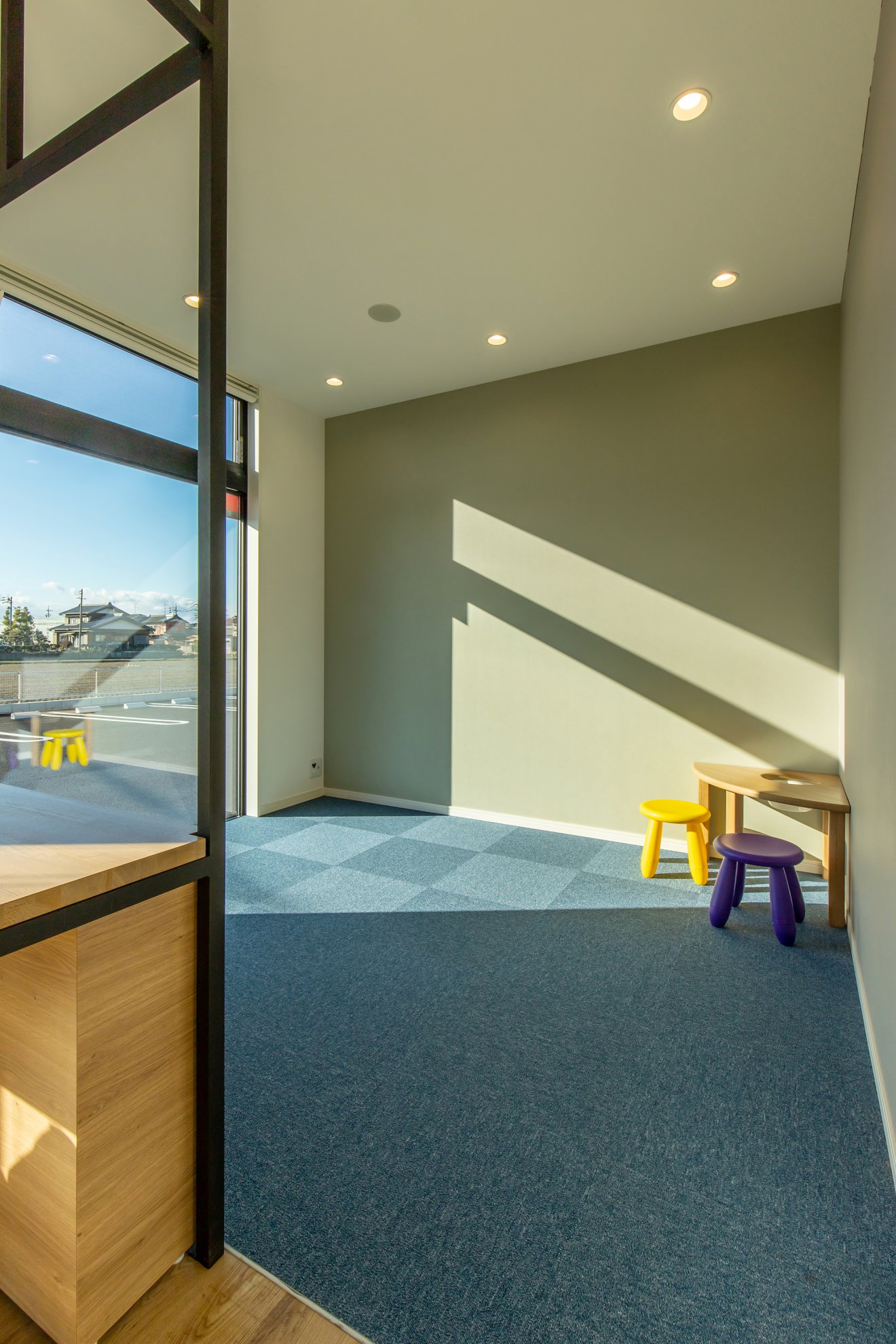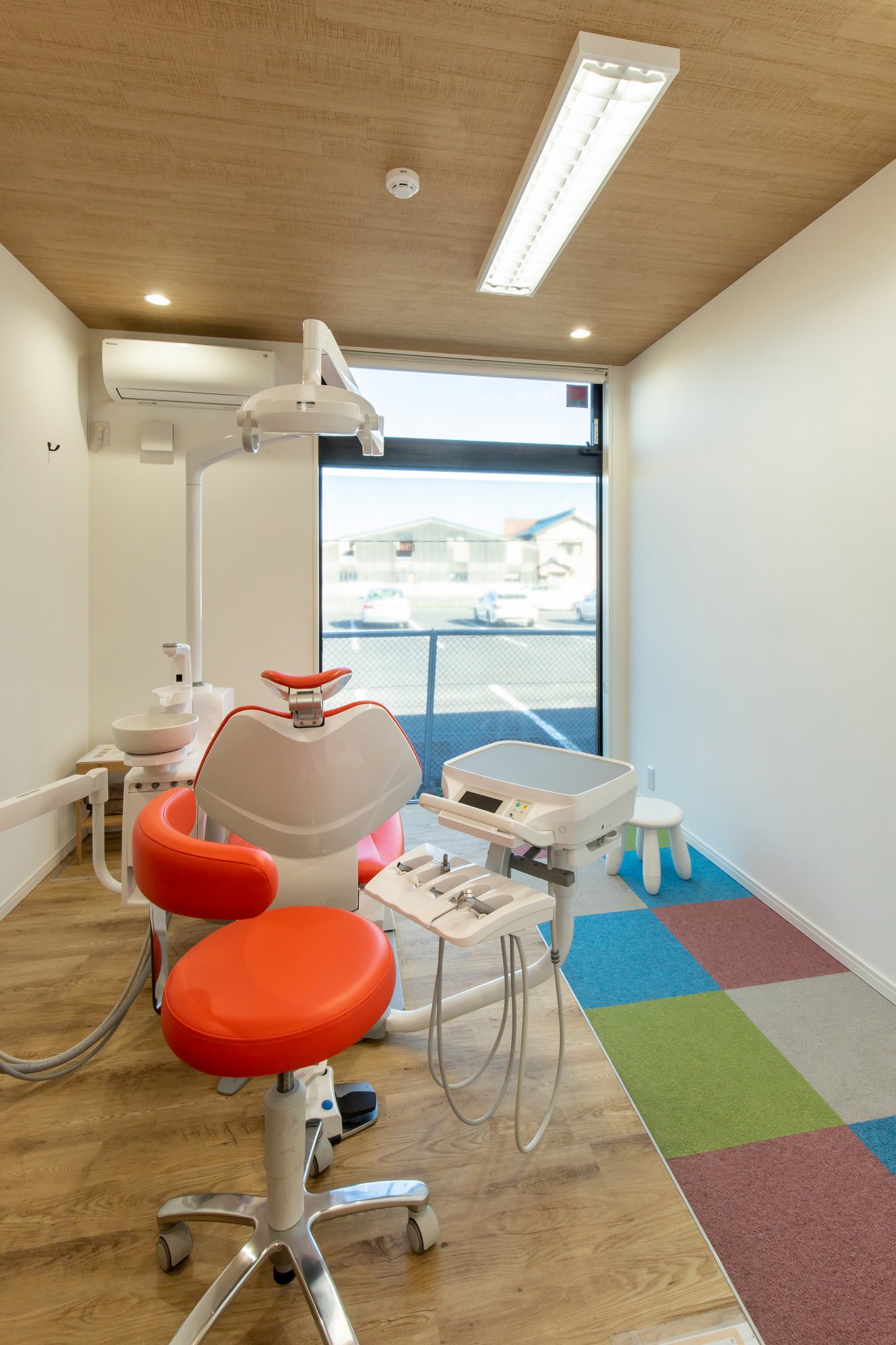地域に馴染むスタイリッシュな外観は、アプローチしやすくデザイン性に優れています。待合い室はナチュラルな木目と陽光に包まれ、勾配天井でより開放的に。キッズルームを完備し、診療室はお子様がリラックスできるように落ち着いた色調でコーディネートしました。