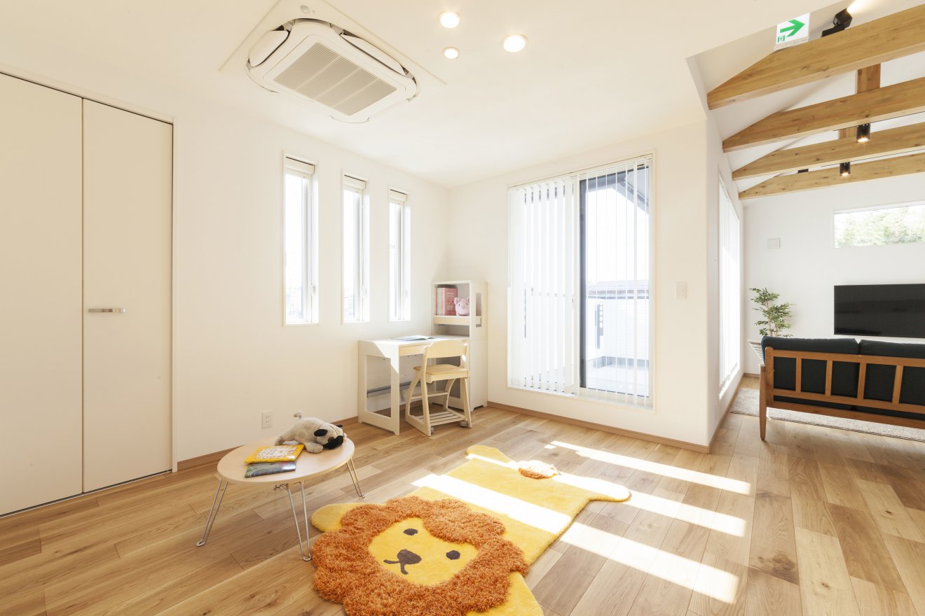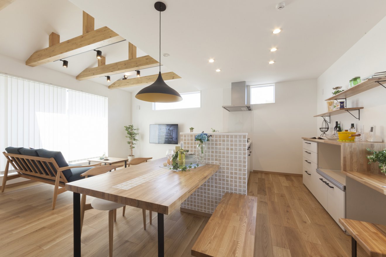 【リビング】2階には、キッチンと一体でカウンターとダイニングテーブルを造作した子世帯のLDKをレイアウト。 【洋室】将来は個室にも変更できるフリースペースを用意しました。