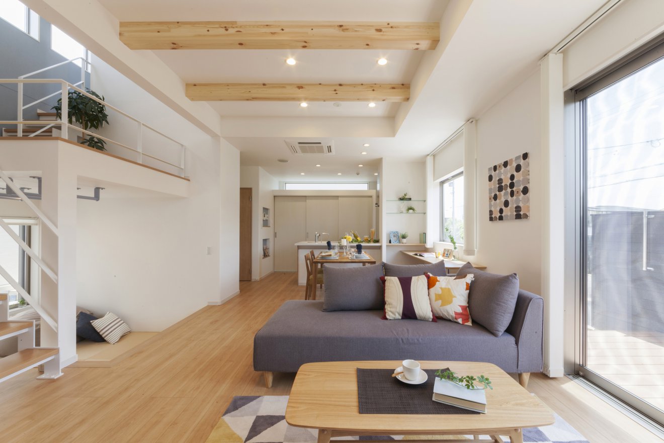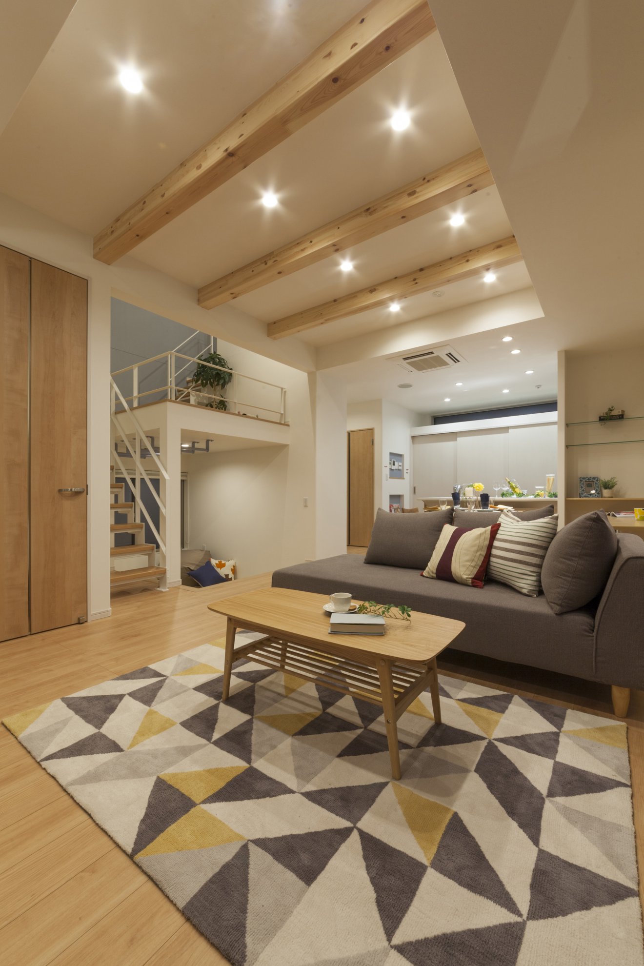 【リビング】スキップフロアは効率のよい空間設計をコンセプトにゆとりの空間や収納力アップを実現しました。