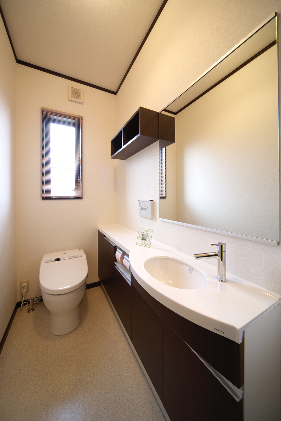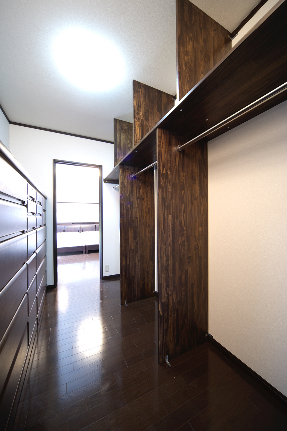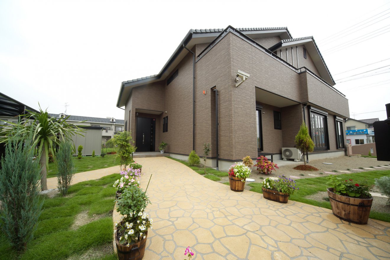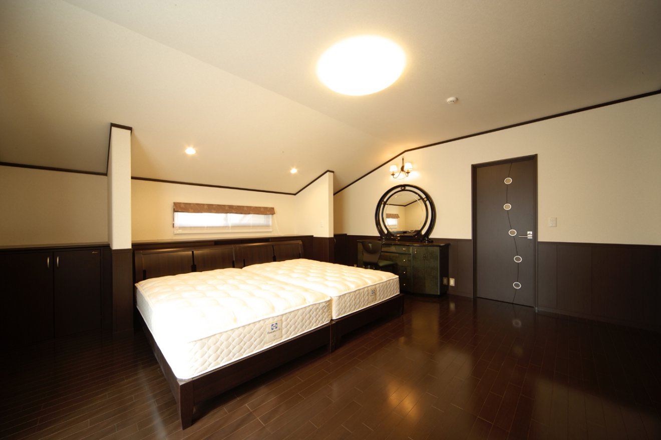 ホワイト系の石目調床材で、明るく高級感ある玄関ホールとLDK。家具もモノトーンで統一し、シックで落ち着いた印象にまとめました。