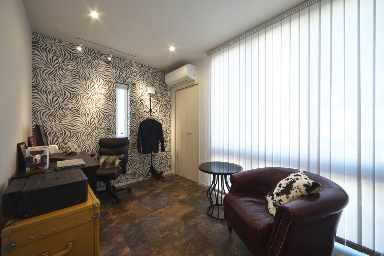 【書斎】落ち着いて過ごせるように、書斎を直射日光の当たらない2階の北側にレイアウト。窓を床面まで延長させることで、優しい自然光に満たされる部屋を完成させました。