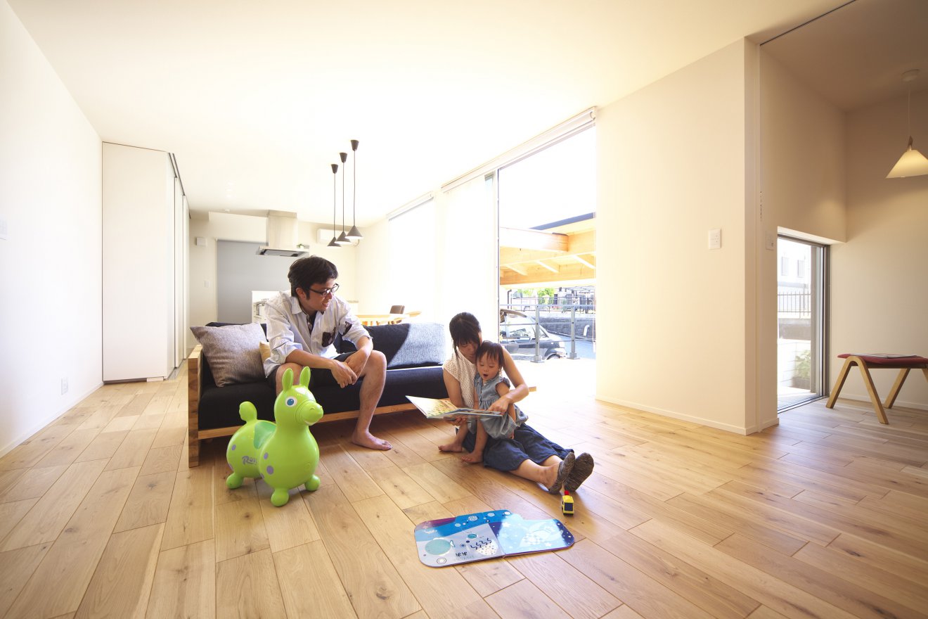 【リビング】たっぷりの光が降り注ぐリビングなら、お子様ものびのび過ごせますね。 【DK】ダイニングとキッチンは横並びに。食事の準備や片付けも楽に行えます。