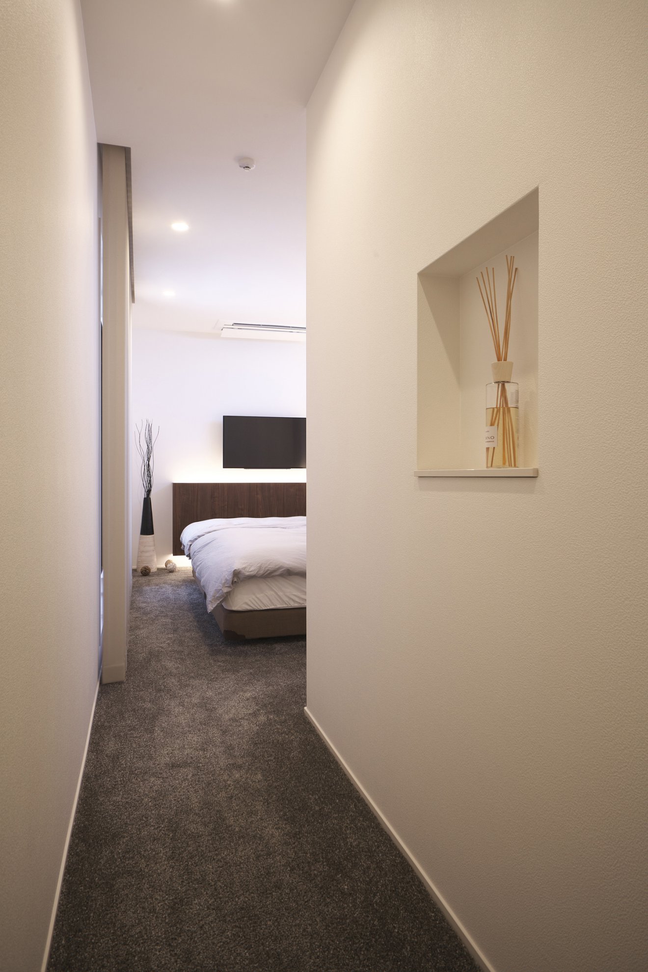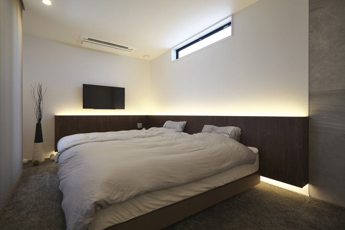 【主寝室】アクセントクロスと間接照明で落ち着いた雰囲気の主寝室。
