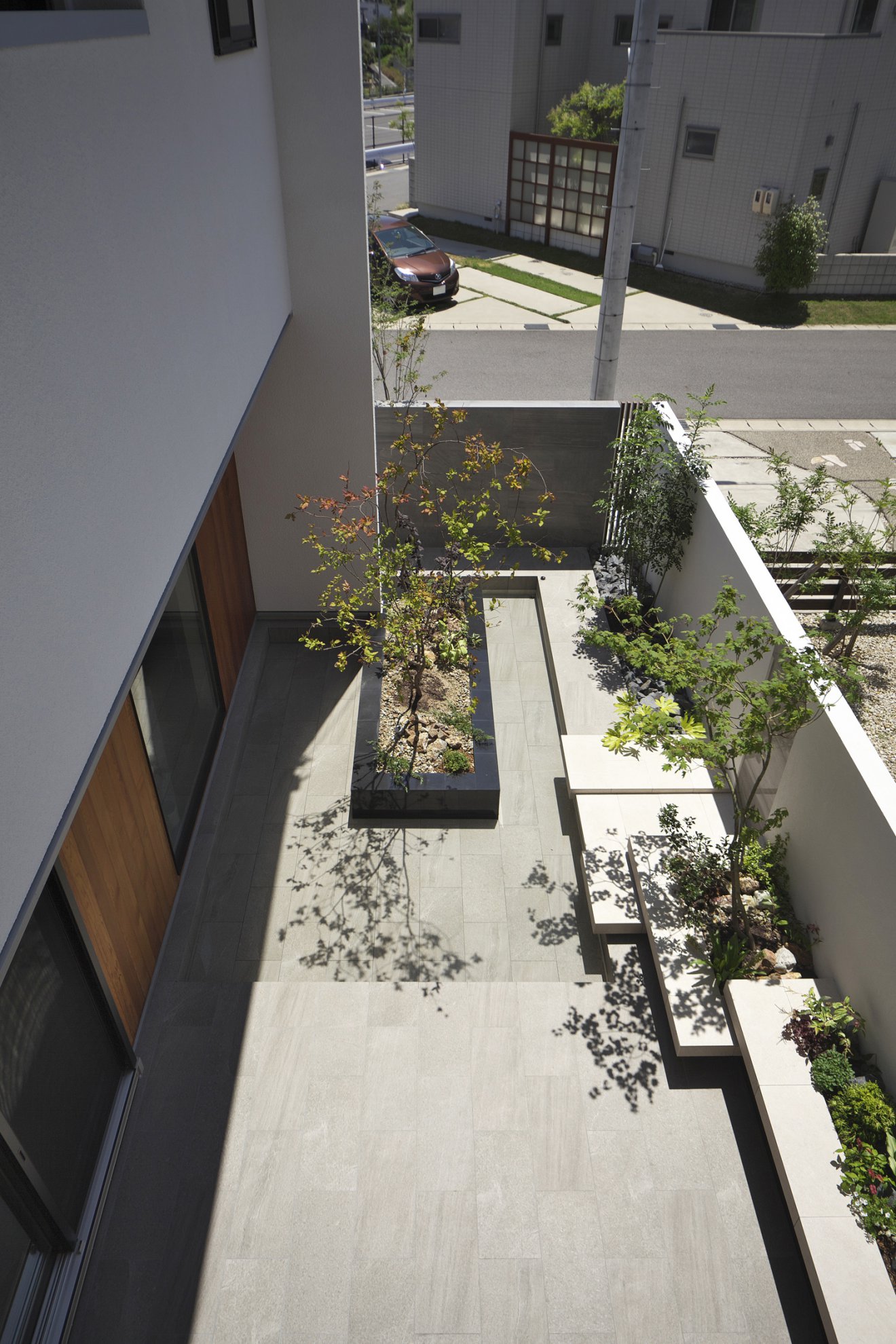 【庭】2階から見たウォーターガーデン。陽光がたっぷりと降り注ぎます。