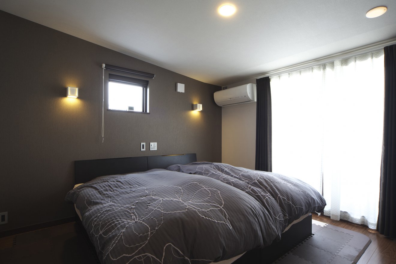 【寝室】アクセントクロスで壁の色を変え、落ち着きのある主寝室。