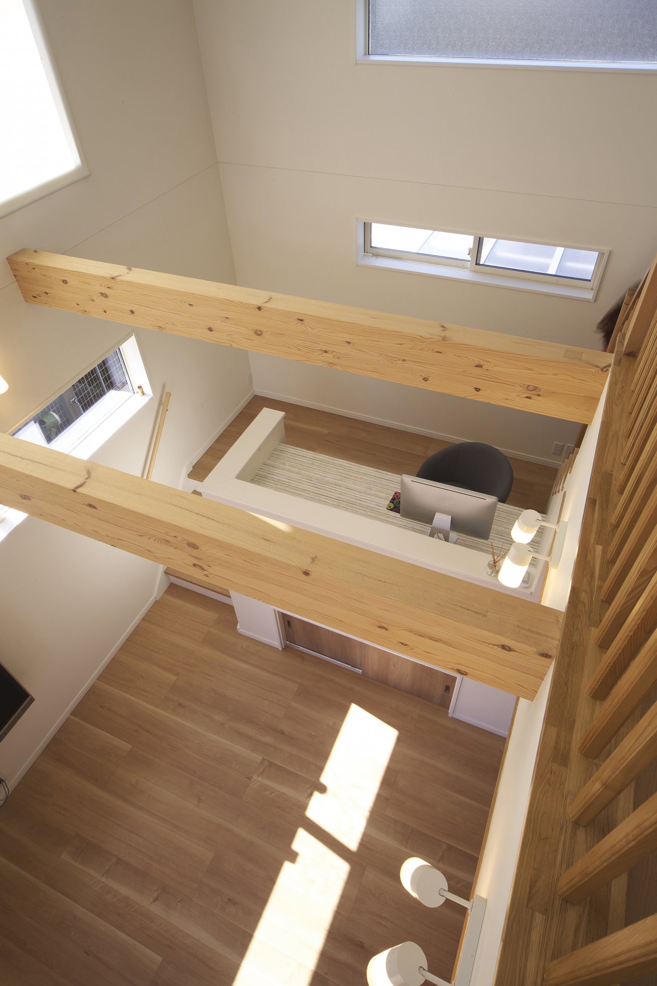 【書斎】家族の様子に目が行き届くように、階段の踊り場に設けたご主人の書斎。父親の存在が身近に感じられる工夫の一つです。