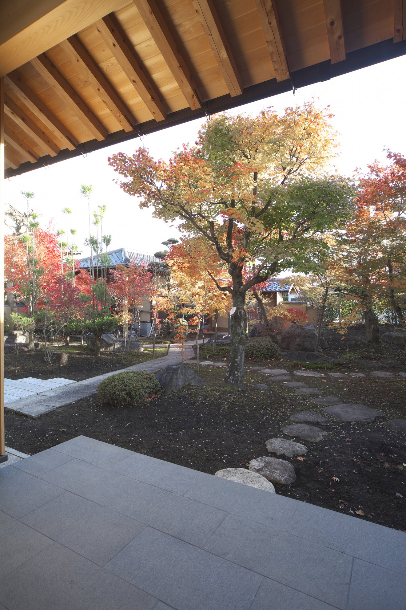 【庭】軒を深くした玄関アプローチからの飛び石も印象的です。