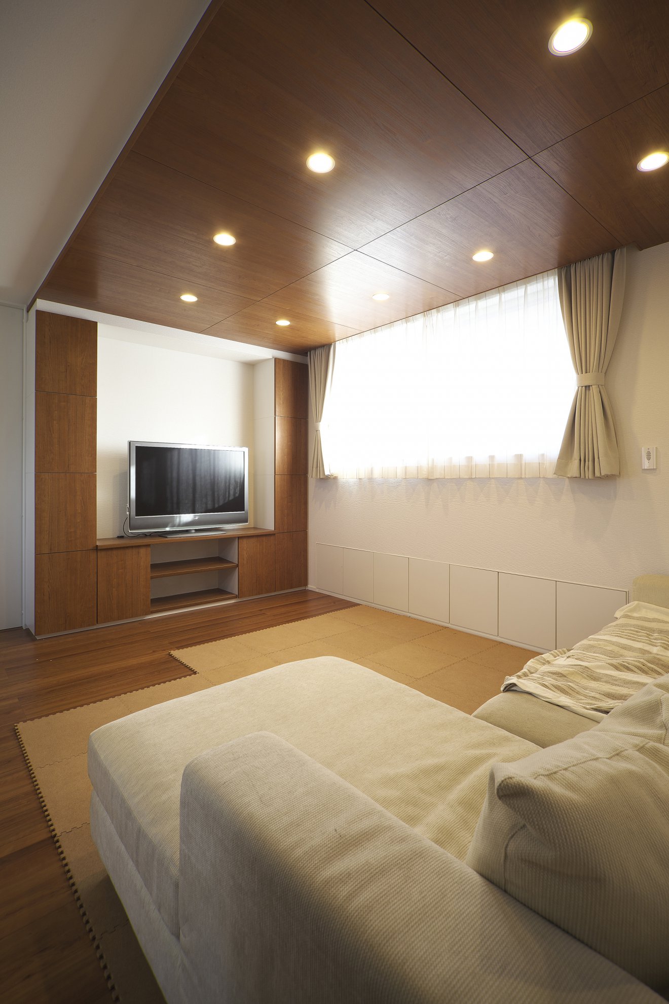 【2階LDK】勾配天井を採用し、天井高を活かした2階のLDKは開放的な空間になりました。