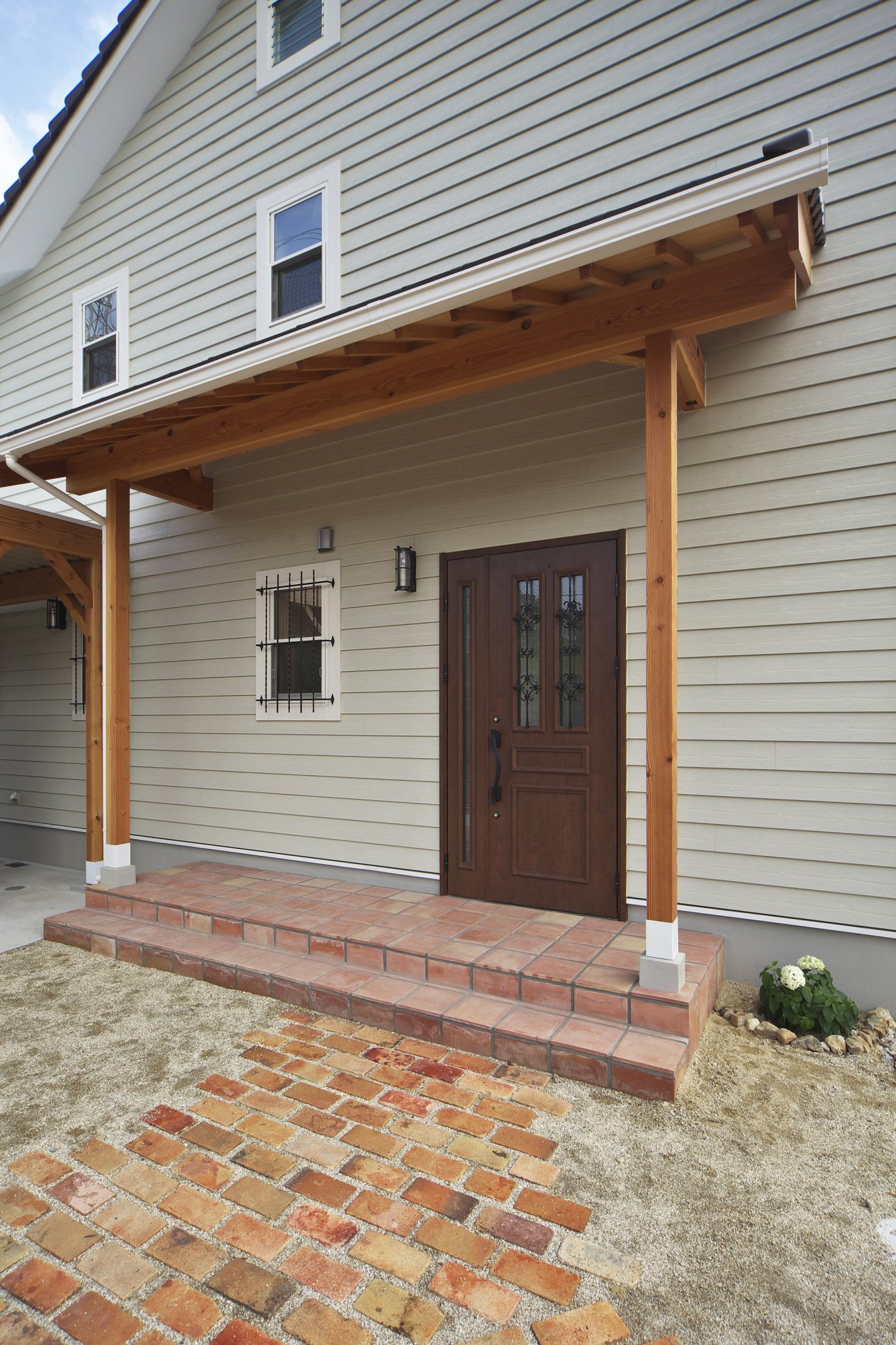 【外観】カントリースタイルの外観。カーポートも門塀も木製にこだわりました。