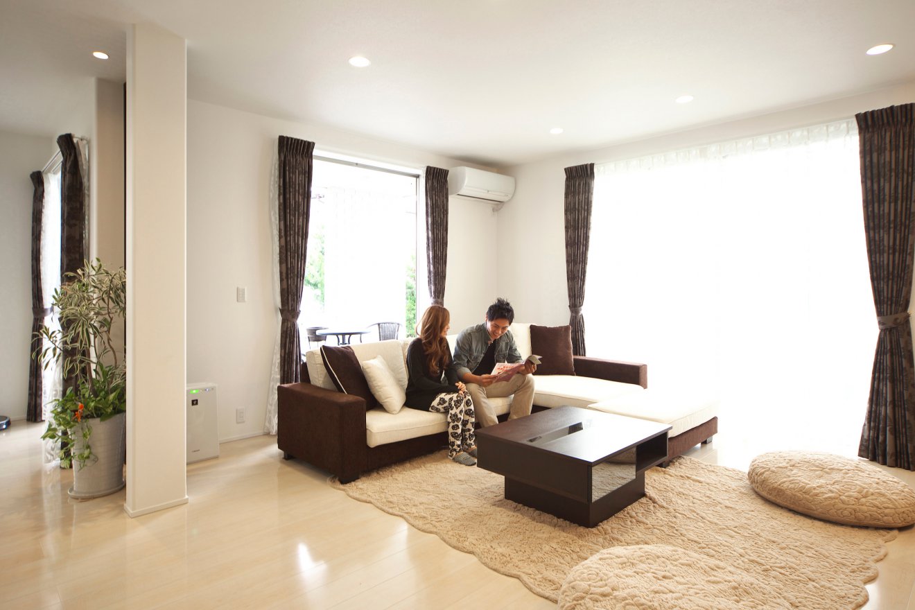 【リビング】大きな窓で明るく、開放的なリビング。 【LDK】白と黒でシンプルなデザインに統一されたLDK。