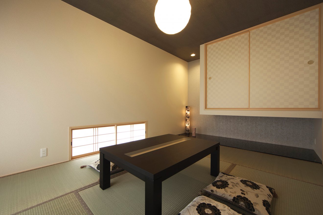 【和室】吊り棚を採用した和室。小さな窓に障子あり、落ち付く空間です。
