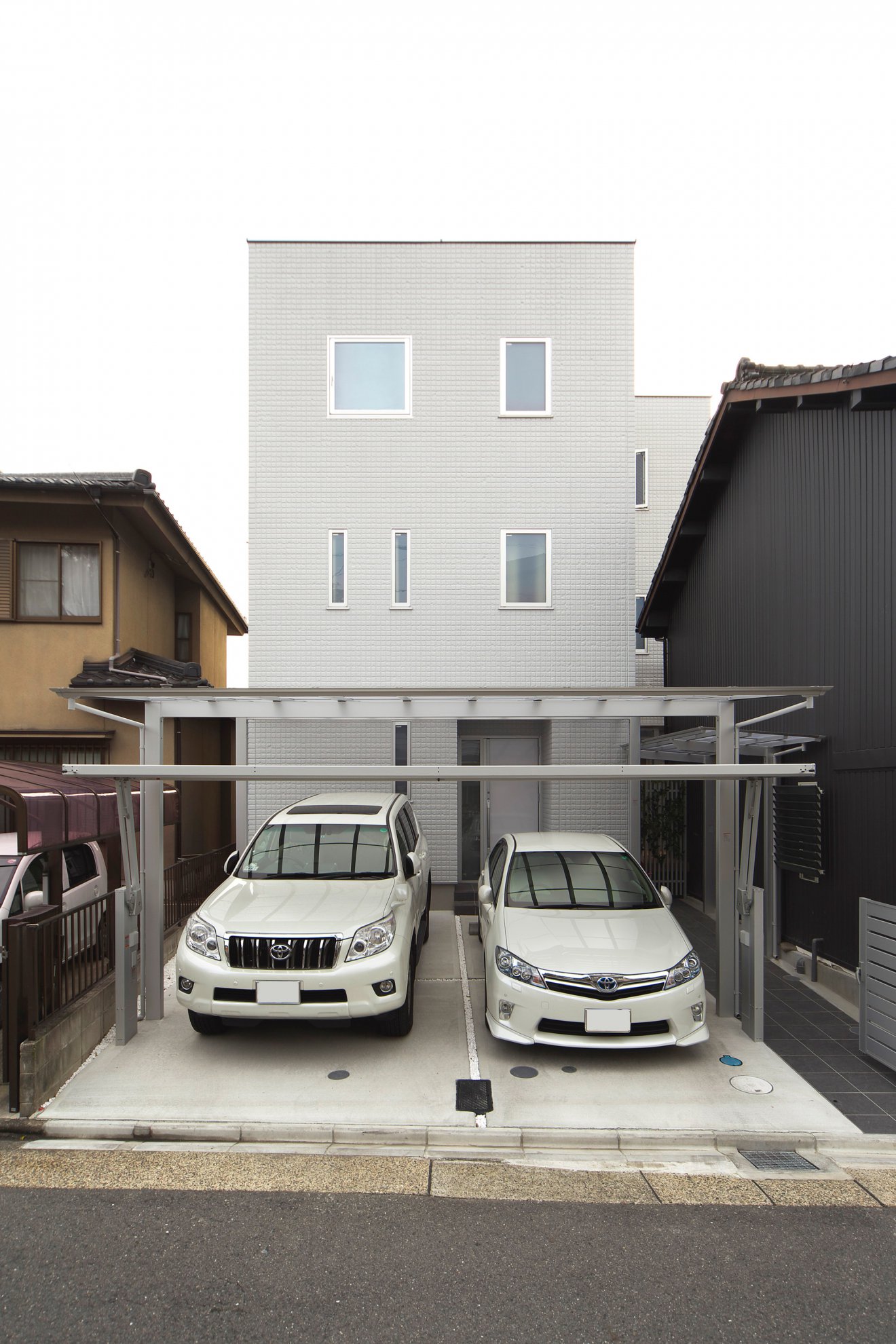 【外観】ホワイトでまとめたモダンスタイルの外観。カーポートも含め、トータルでデザインを整えました。