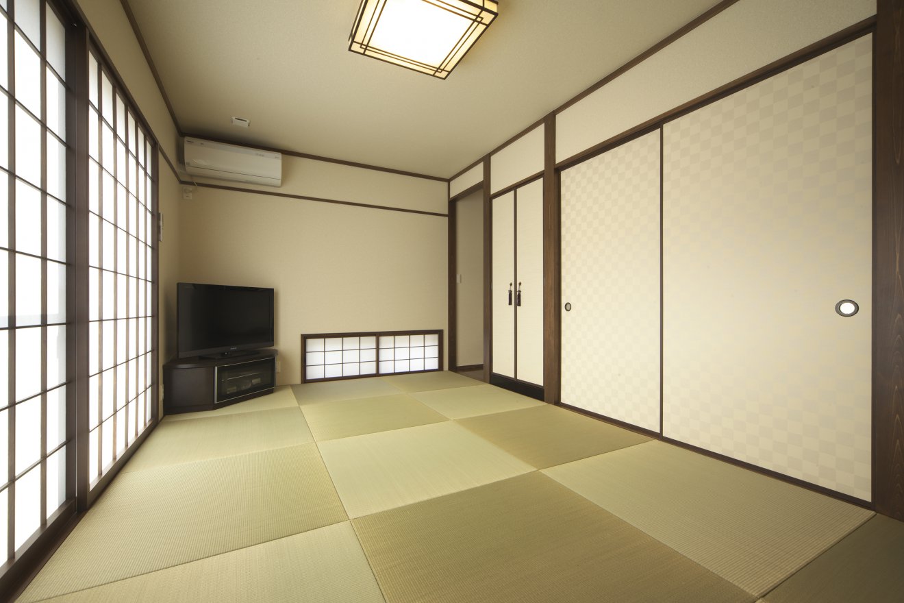 【和室】床の間や仏間、付け鴨居を備えた本格的な和室。ヘリ無し畳にすることで、モダンな空気を取り入れています。