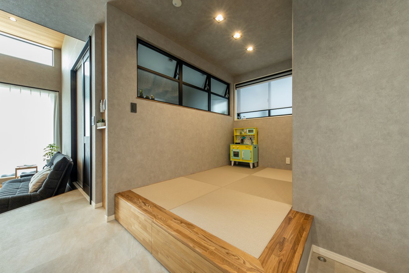 【タタミコーナー】子供の遊び場に昼寝スペース、アイロンがけ等、様々なシーンで活躍する空間。キッチンから目が届くのでお子様も遊ばせていても安心です。