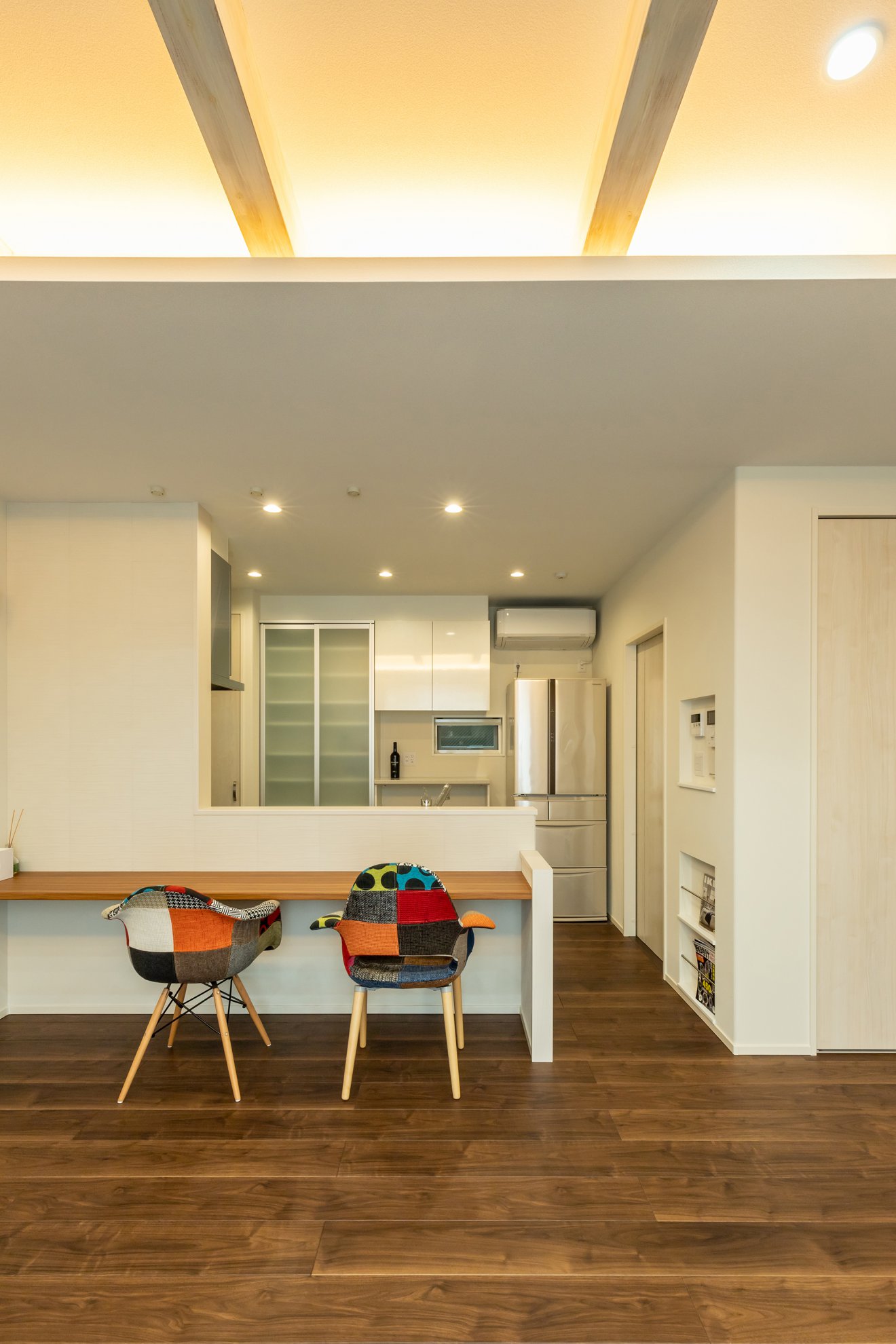 【LDK】キッチン対面カウンタースペースは、軽食やパソコンスペースとして活用できます。