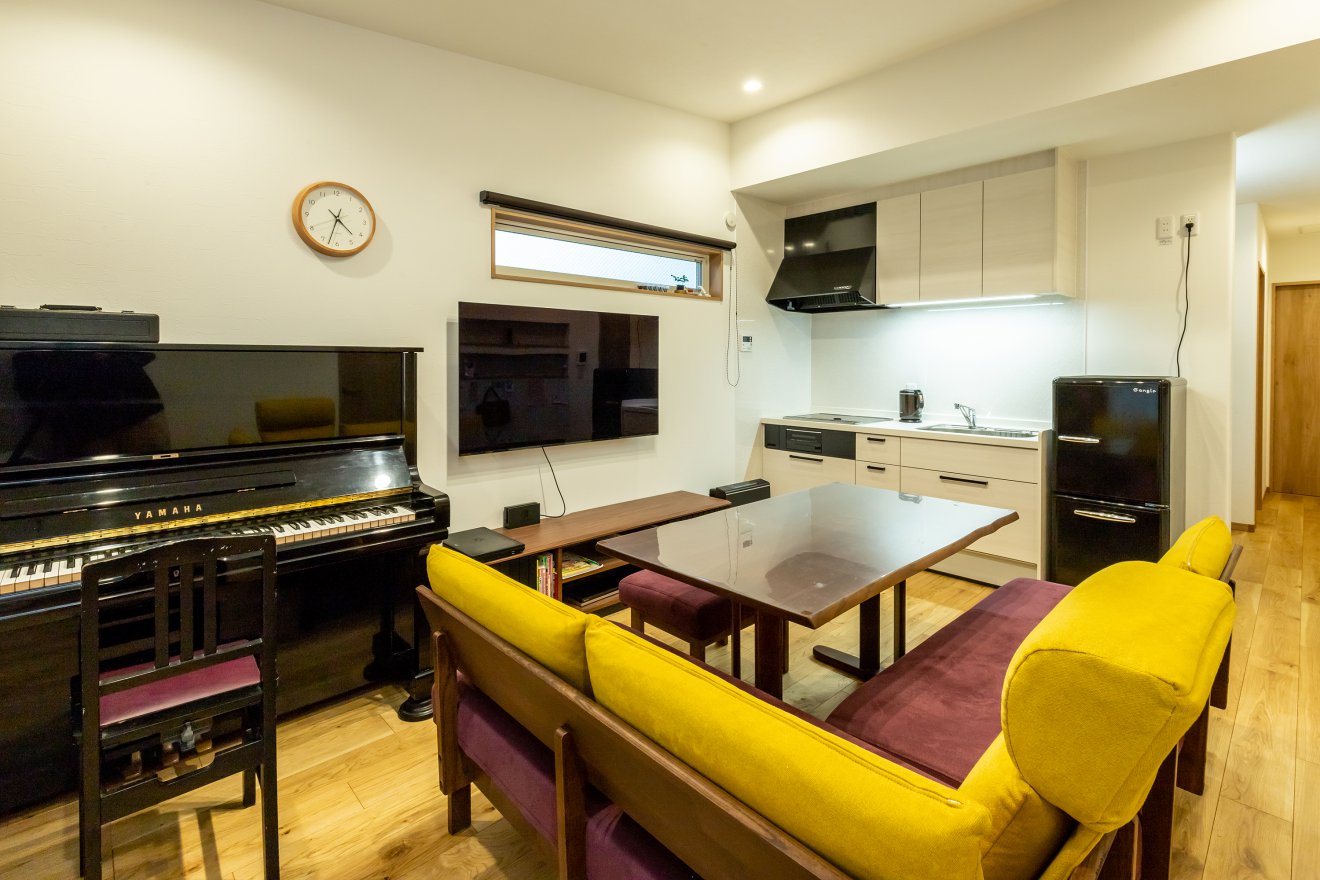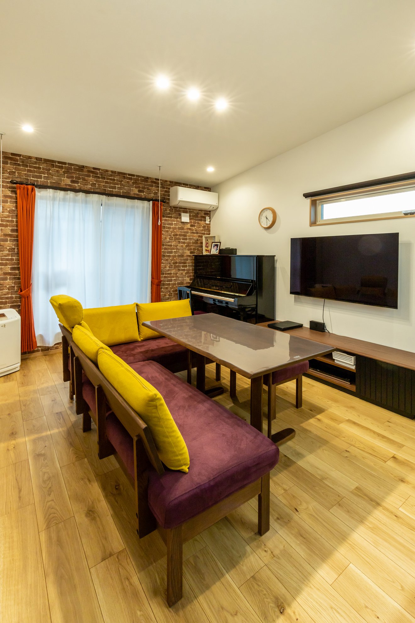 【リビング】テーブルとソファの高さを揃えるのも、空間を広く見せる工夫の一つです。