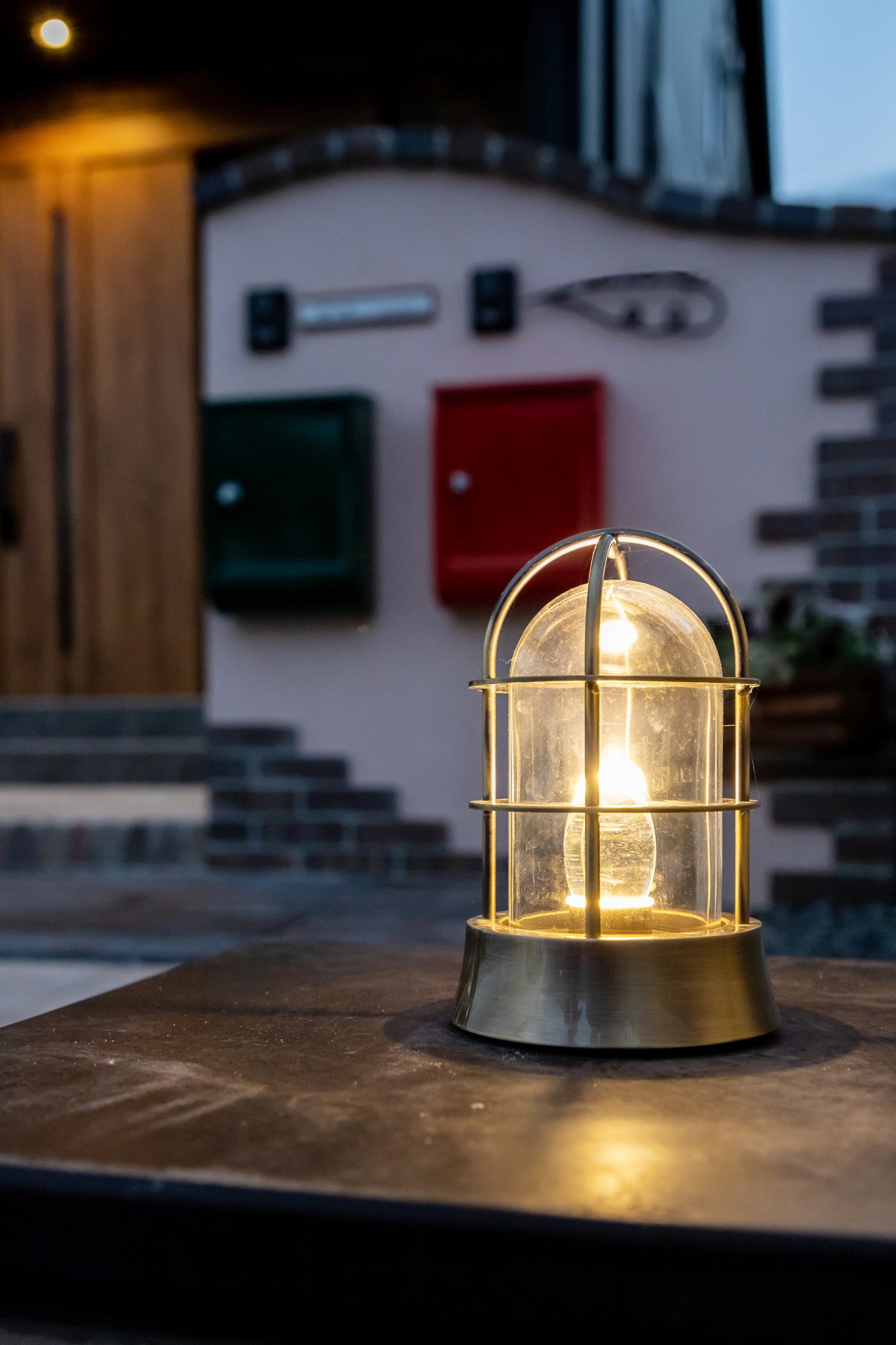 【照明】住宅空間を和らげる間接照明。船舶照明が外構のワンポイントに。