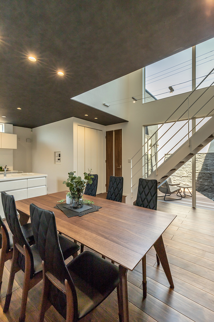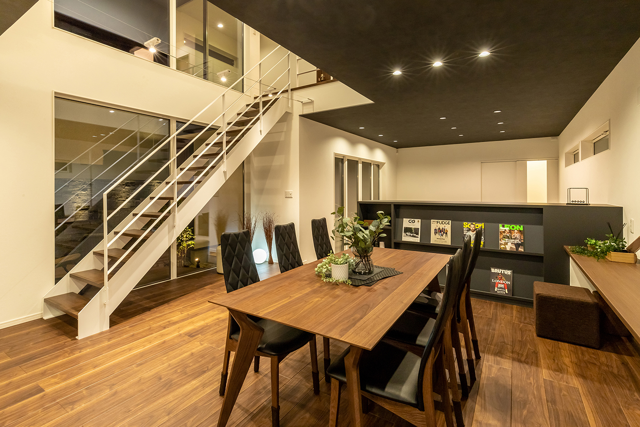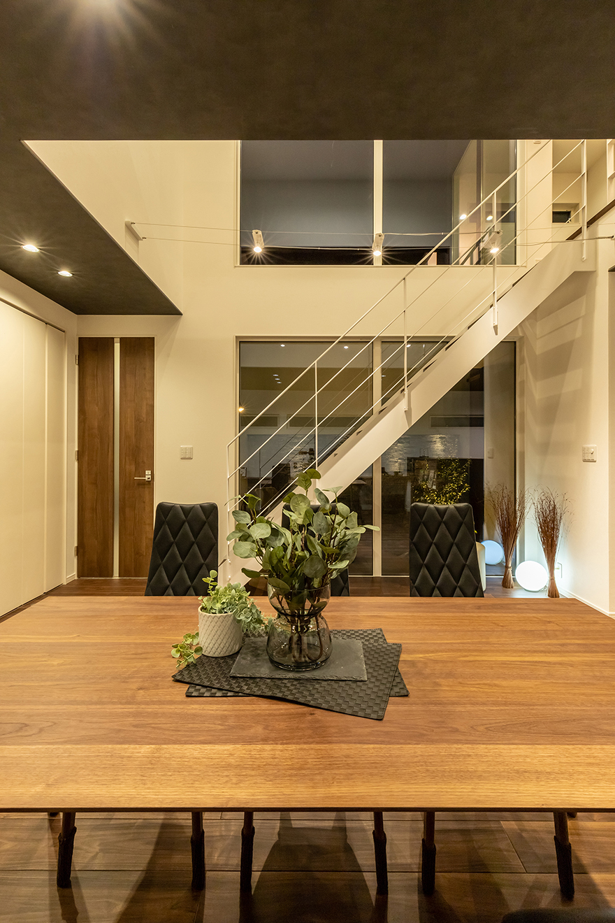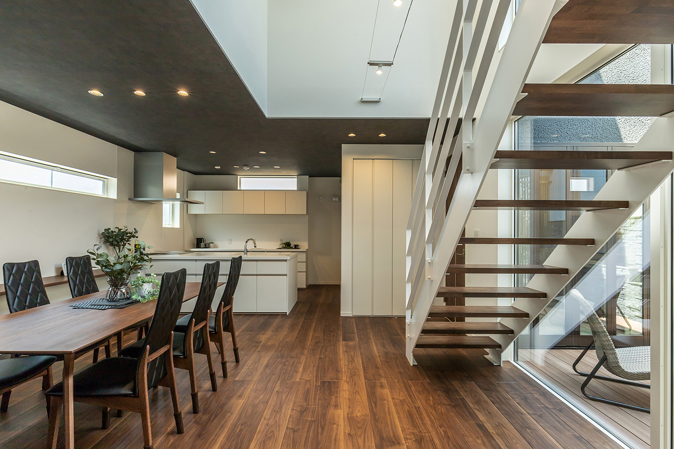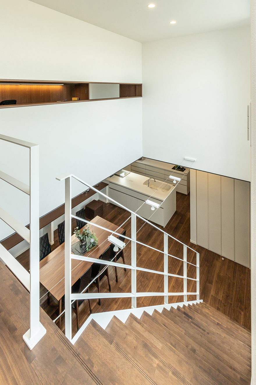 【DK】ストリップ階段の視覚的な抜けが、空間に広がりとゆとりをもたらしています。