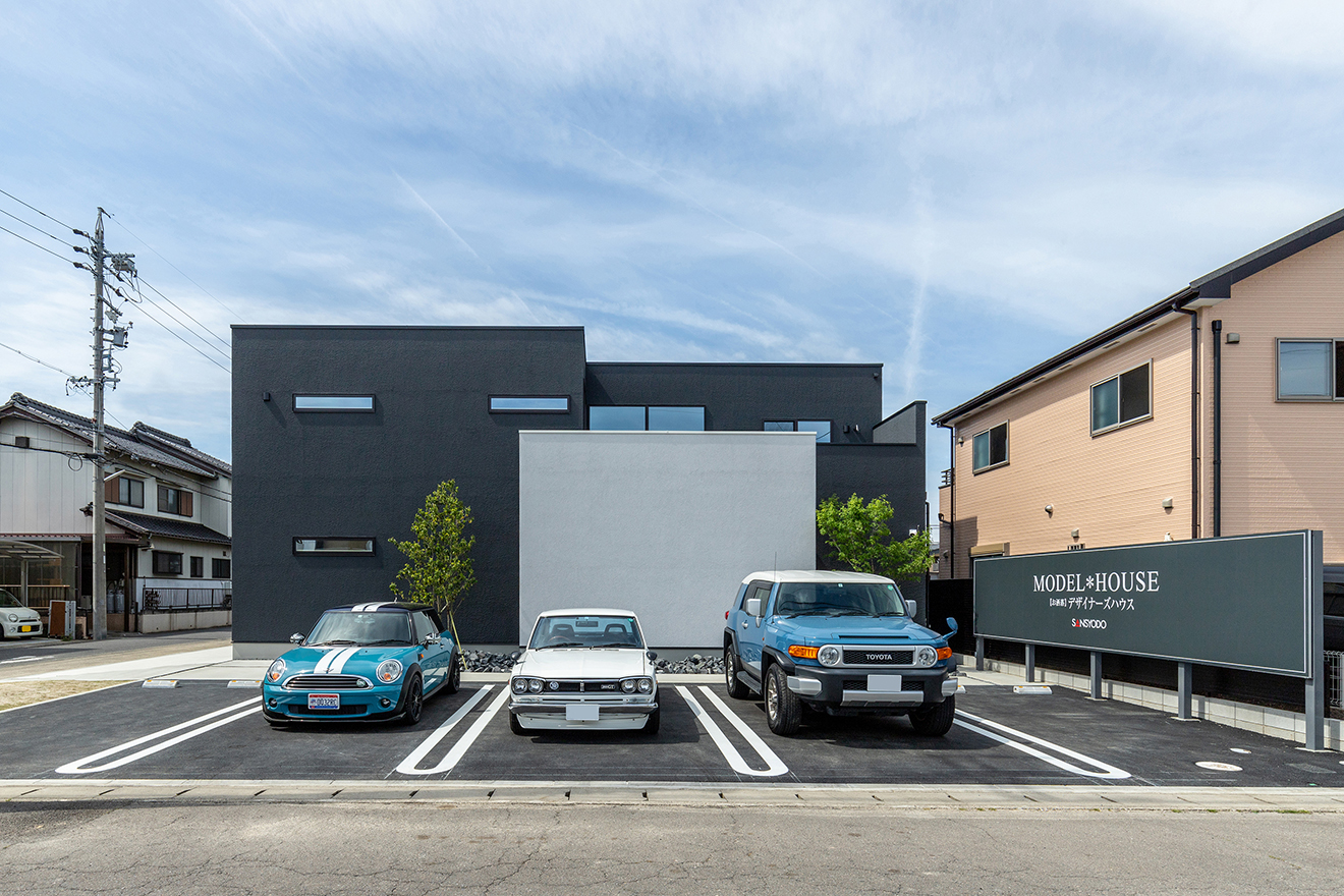 【外観】黒色のジョリパットによる重厚感ある外観。正面の木目が良いアクセントになっています。