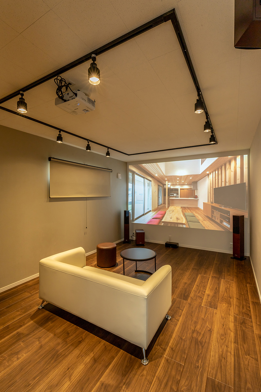 【ホール】大きな窓から差し込む陽光は、吹き抜けによってしっかりと階下まで導くことができます。 【オーディオルーム】音漏れだけでなく、音響にも配慮したオーディオルーム。楽器の練習室としても好適です。