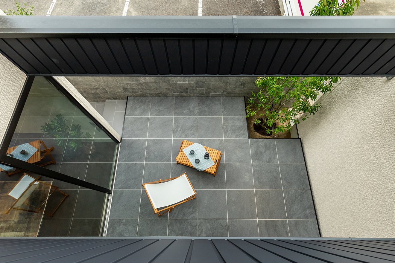 【バルコニー】主寝室とつながっているバルコニーは、洗濯物を干したりタイルデッキを見下ろすこともできます。 【インナーバルコニー】隣地から見えにくい北東向きのインナーバルコニーなら、外部の視線を気にすることなくゆったりと過ごせます。