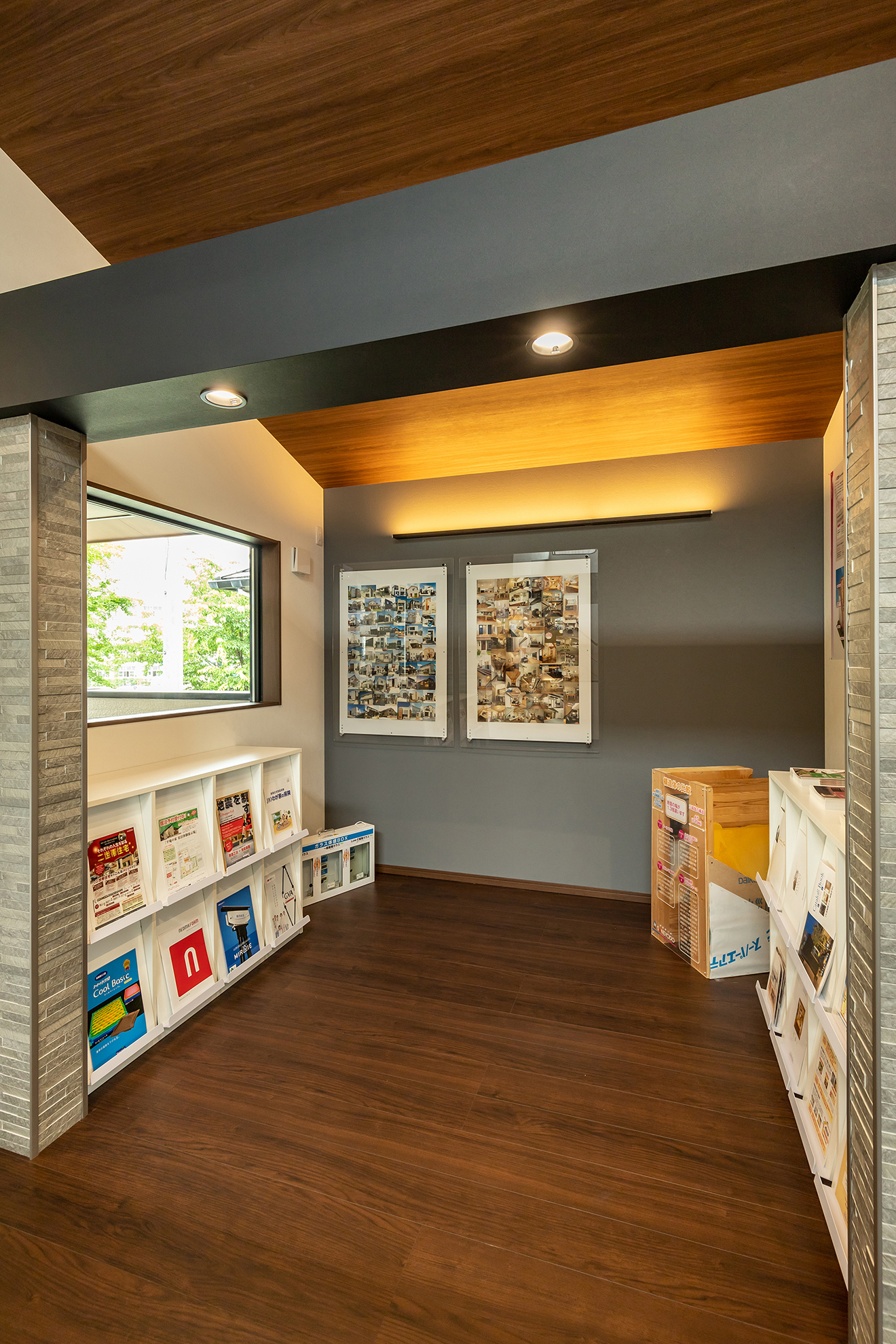 【ヌックスペース】「ヌック」とは、こじんまりとした籠りのスペースという意味です。吹き抜け縦空間の一番上に作られた、お一人専用の籠りスペース。リビングなどメインエリアから程よく離れていますので、ちょうどよい感じで一人の時間が楽しめます。