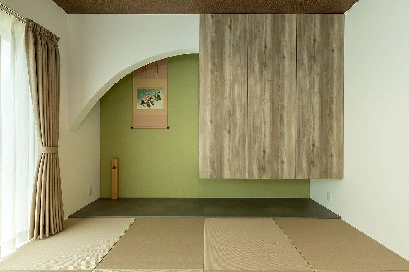 【和室】和室の板の間面はシンプルでデザイン性のある意匠に。鉄錆をイメージした板はより和風の雰囲気を引き立ててくれます。 【照明・アクセサリー】住まいを彩るおしゃれなペンダント照明。