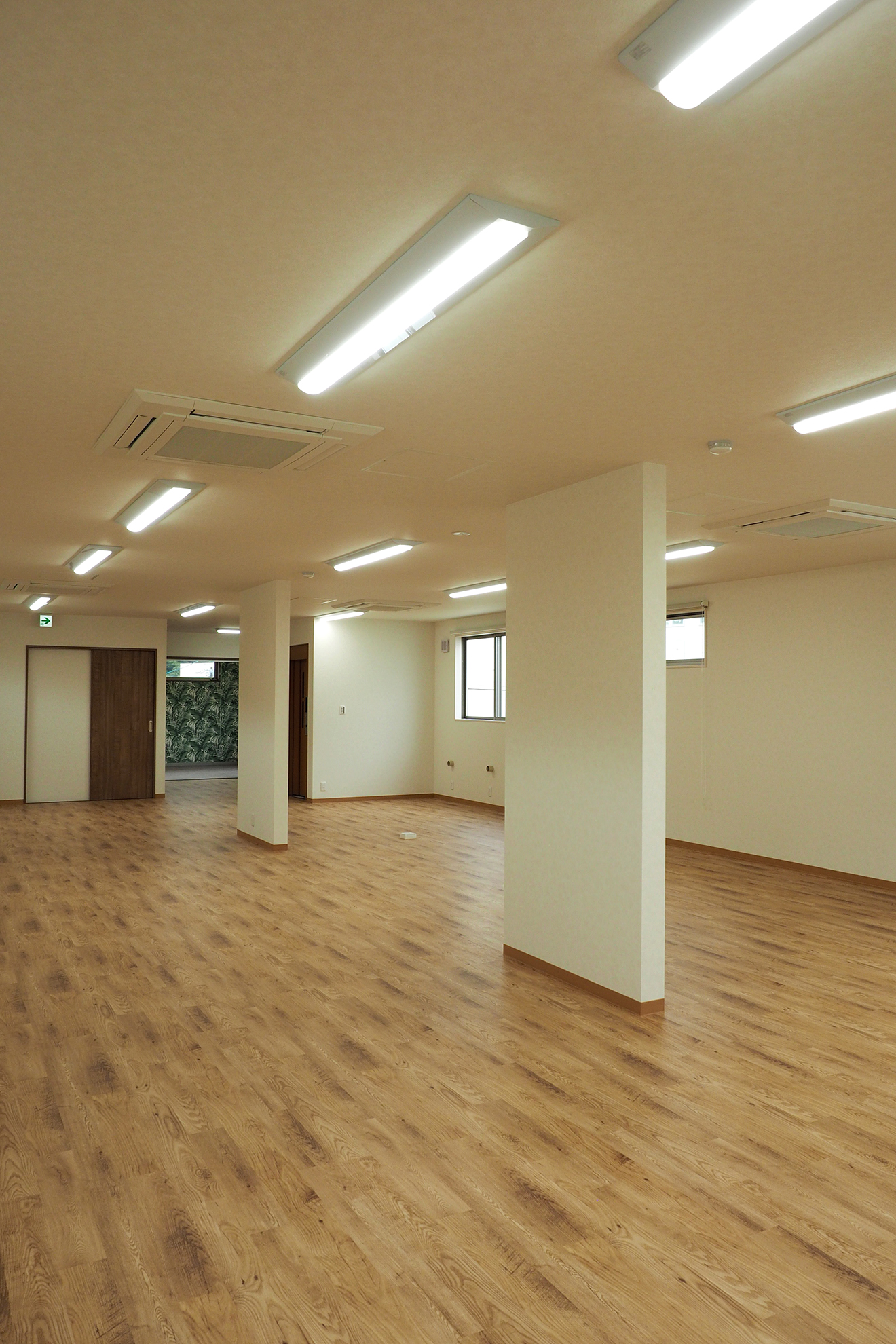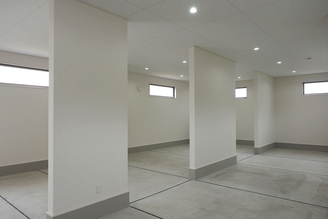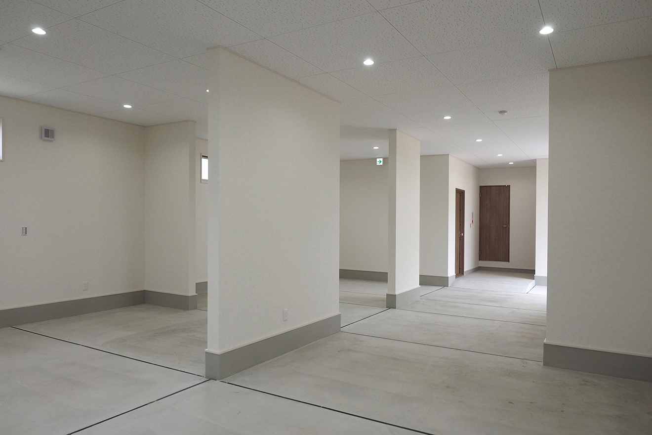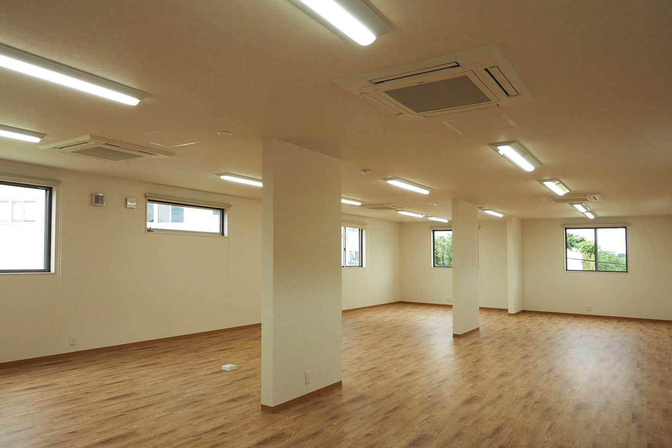 【店舗内】2階の店舗部分は1階と同じく、構造壁以外をすべてオープンにして開放的な空間としました。