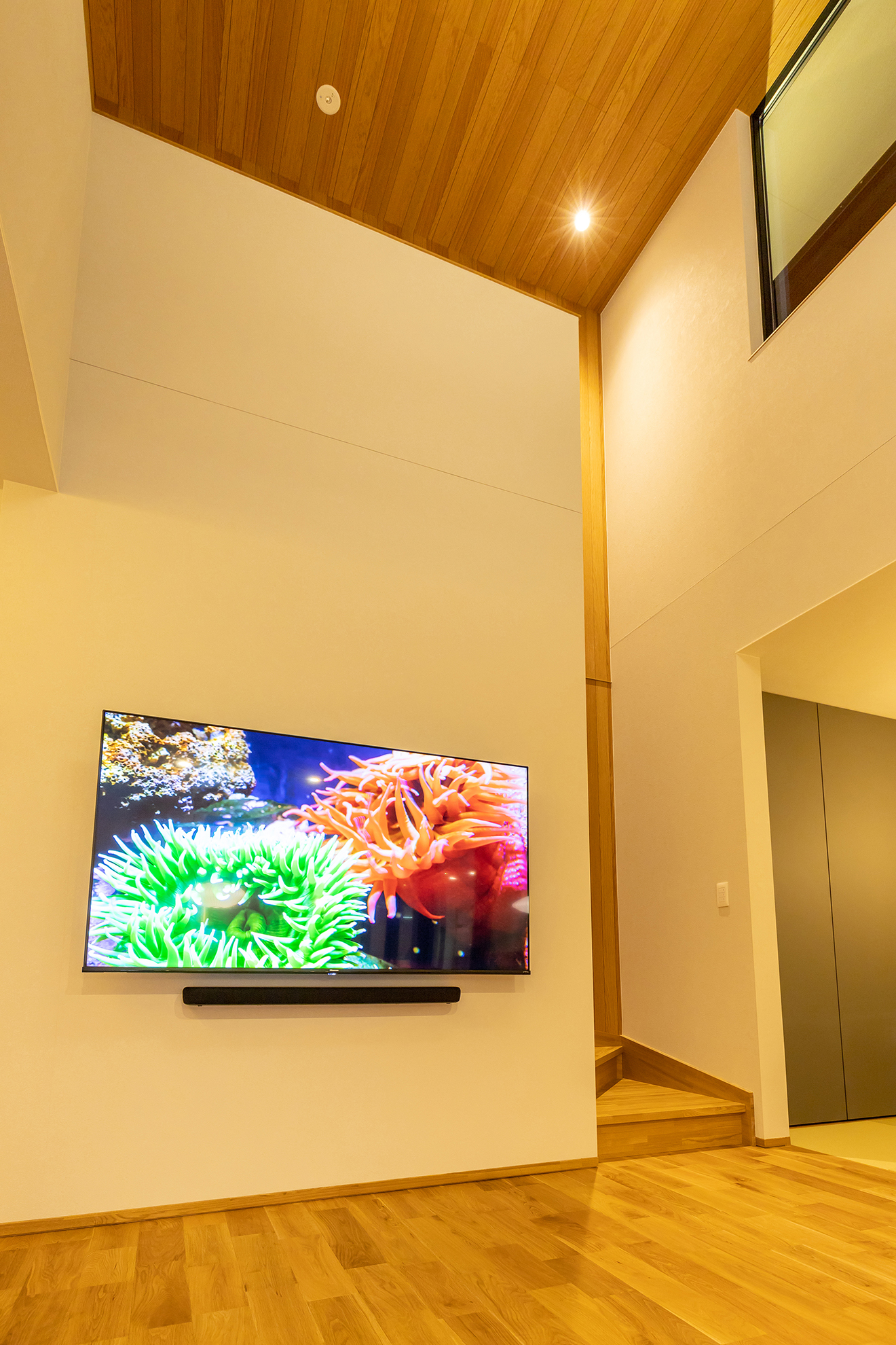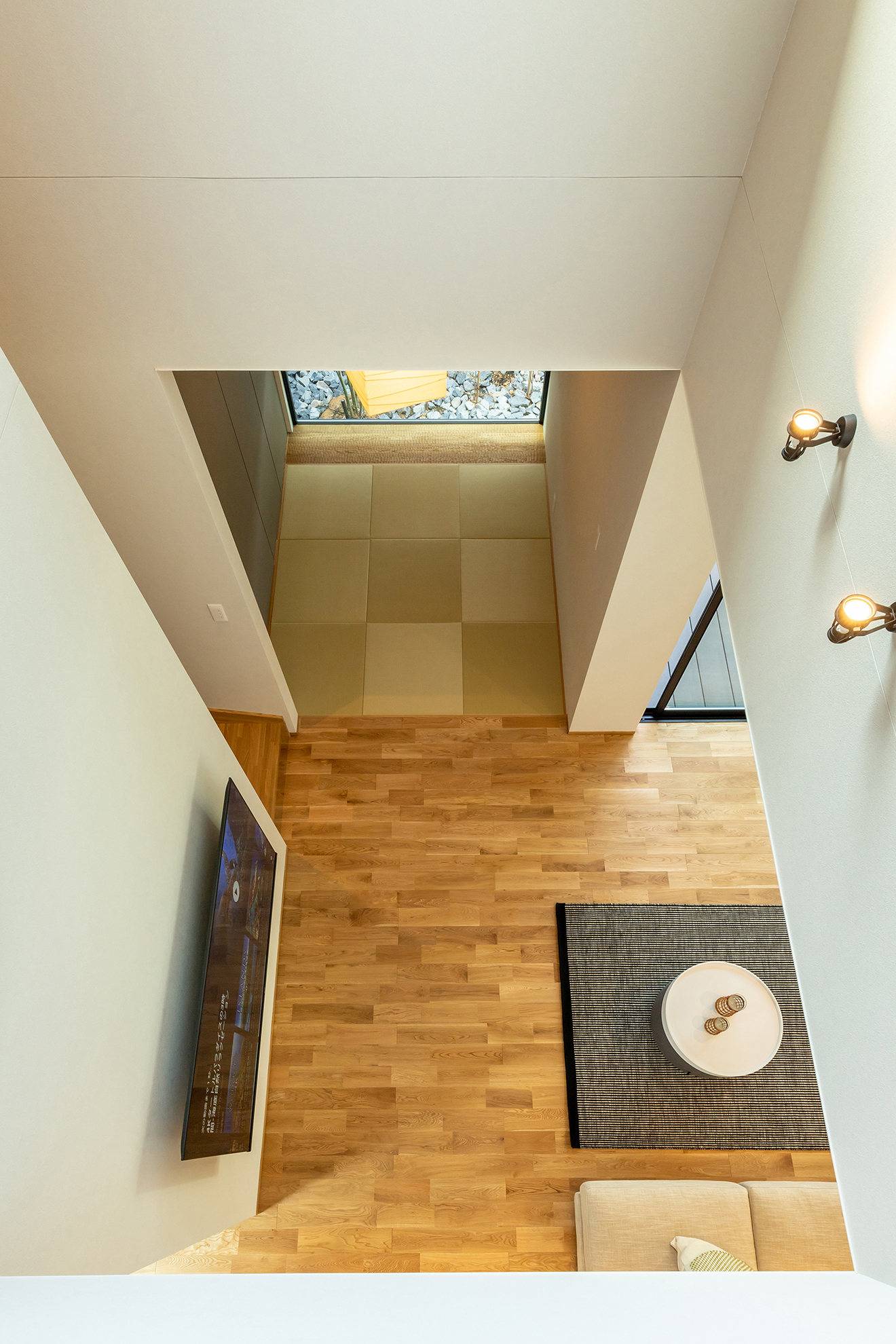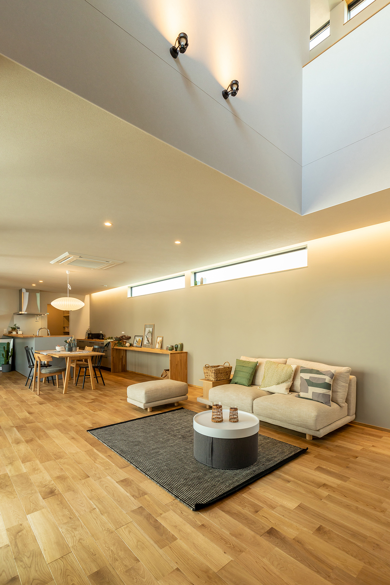 【吹き抜け】優しい光がリビングまで差し込み、広がりと暖かさをもたらします。