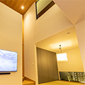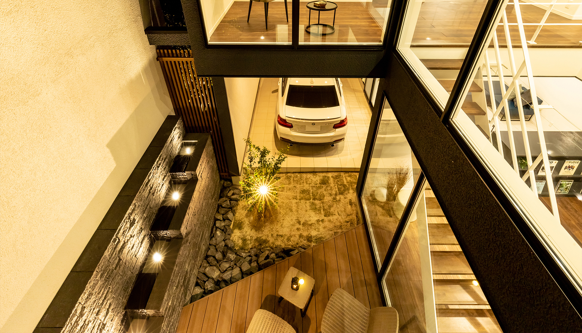 吹き抜けを設けることで視線だけでなく家族のコミュニケーションも広がります。お洒落な室内窓で通風や採光も抜群です。