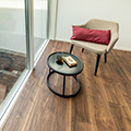 木目とアイアンのブラックでコーディネートされたシックで上質な雰囲気のLDK。併設されたアウトリビングが開放感を演出します。