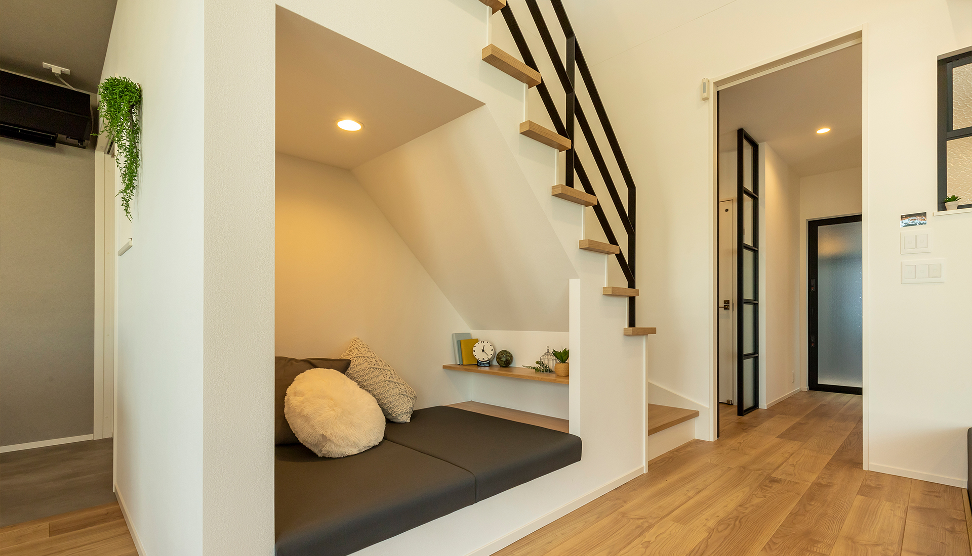 空間の有効活用がスキップフロア最大のメリットです。お子様の遊び場、収納スペース、ライブラリーや書斎など、様々な用途で活用できます。