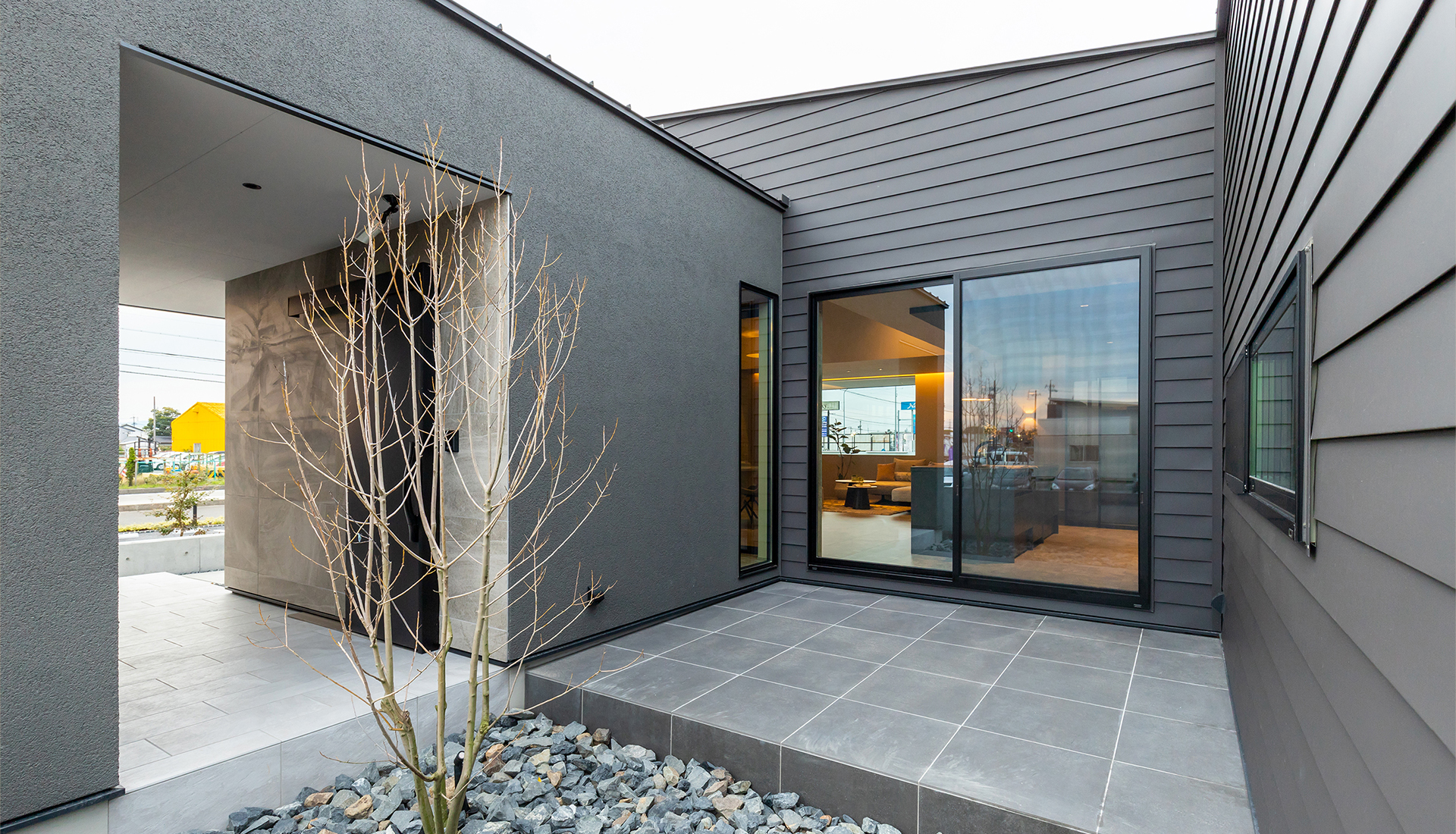 印象的な佇まいの外観はグレーを基調にスタイリッシュにまとめました。