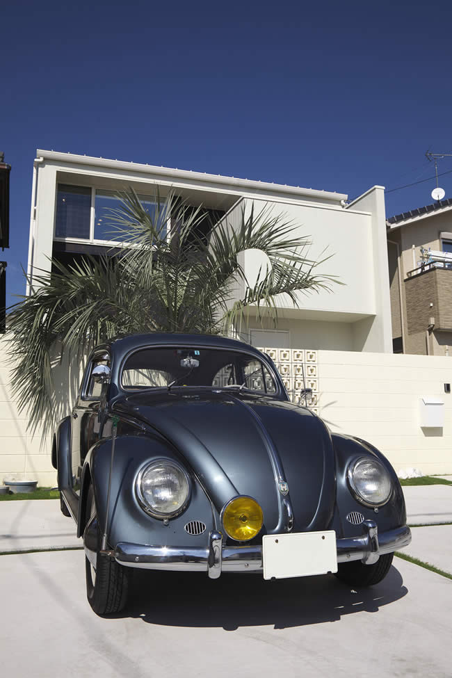 インナーガレージは、玄関のピクチャーウィンドーから愛車が眺められるギャラリー仕立て。