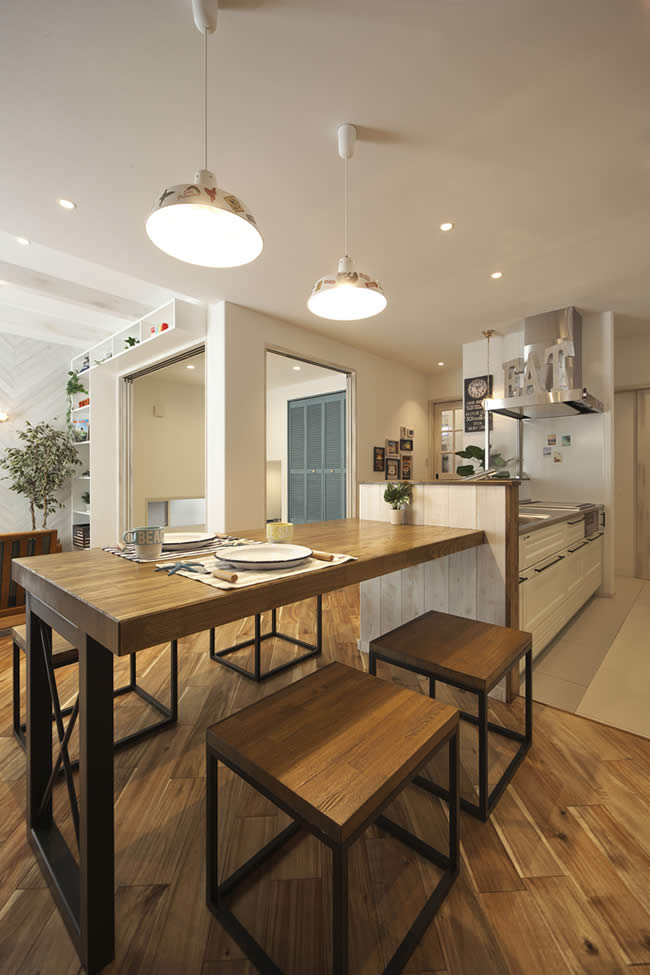 キッチンと一続きになったダイニングテーブルなら、食事の準備も後片付けもラクラク。使い勝手の良い家事動線が実現しました。