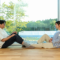 お客様のご希望をお伺いした上で、設計担当がプロ目線でライフスタイルに合わせたプランをご提案いたします。特に家事動線や収納など、実際にその場に立ってみないと使い勝手が分かり難いものについては、施工事例を使いながら、具体的にイメージできるように説明させていただきます。また、家族構成に応じたプランニングも得意としておりますので、二世帯住宅やセカンドライフのための住まいなどもお気軽にご相談ください。